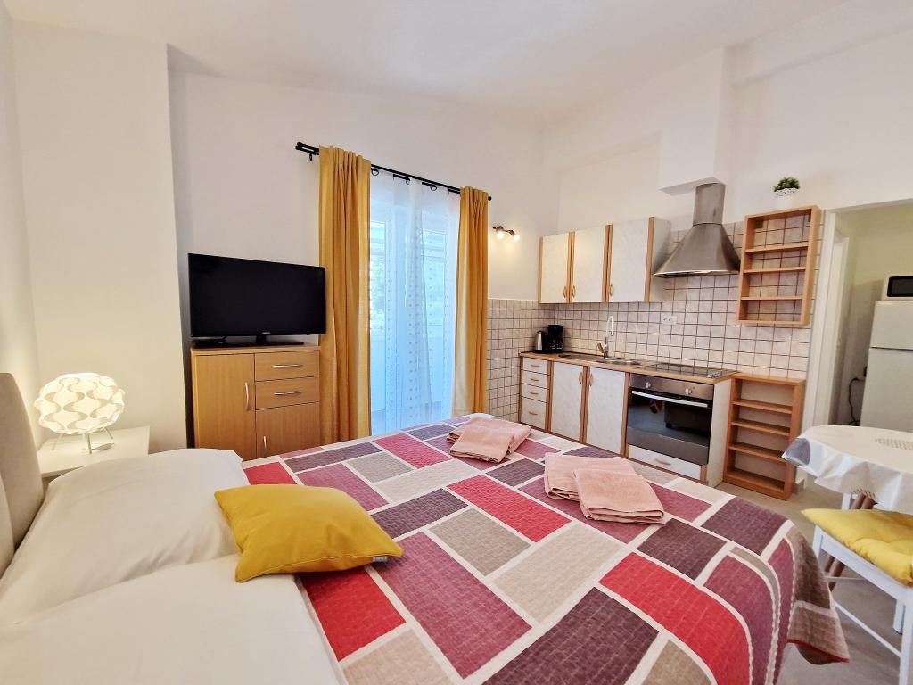 Apartamenty znajdują się 7 minut spacerem od centrum Baški i 9 minut spacerem od pięknej kamienistej plaży Vela Plaža. Wyposażone są w klimatyzację, internet i telewizję satelitarną. Każdy apartament/studio dysponuje jednym miejscem parkingowym i wspólnym grillem elektrycznym.