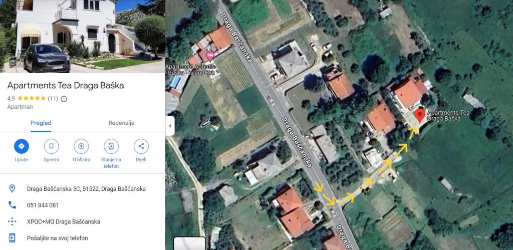 Apartamenty Tea znajdują się około minuty jazdy od centrum Baški i Vela plaža, w spokojnej części Draga Baška.