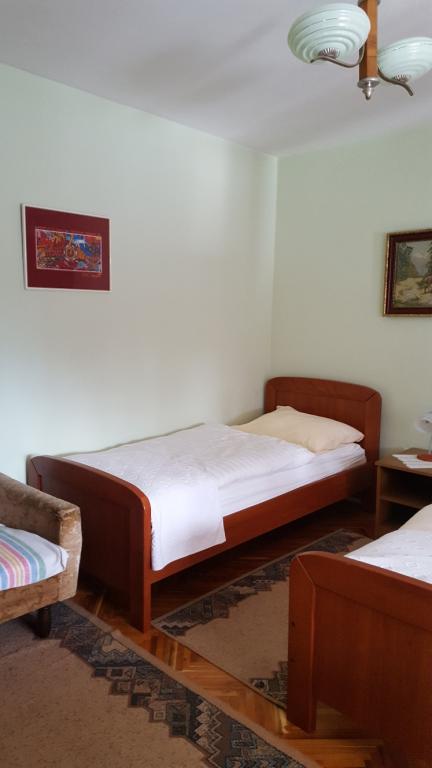 Wynajmujemy trzy pokoje dwuosobowe w obiekcie Anica. Na piętrze znajdują się dwa pokoje z aneksem kuchennym, łazienka (z dołączoną pralką) oraz taras (loggia). Przestrzeń na piętrze jest oddzielona od reszty domu drzwiami i może funkcjonować jako odrębna całość. Na parterze znajduje się dwuosobowa kawalerka oraz taras przy wejściu do domu.Wszystkie pokoje wyposażone są w klimatyzację, bezpłatne WiFi oraz telewizor z płaskim ekranem. Kuchnie wyposażone są w kuchenkę, lodówkę, ekspres do kawy i czajnik. Do dyspozycji deska do prasowania i żelazko. Przed domem znajduje się przestronny parking. Szczególnym udogodnieniem jest bliskość centrum (600 m) i sali weselnej Kristal, a także bliskość boisk sportowych i basenów. Naszym atutem jest gościnność i życzliwość gospodarzy.