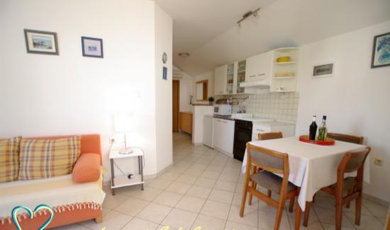 W pełni wyposażone dwupokojowe mieszkanie z ładnym dużym tarasem, całkowicie oddzielnym wejściem, dużym ogrodem krajobrazowym w spokojnej części starej części Betiny. Mieszkanie znajduje się 5 minut spacerem od centrum, w którym znajdują się restauracje, kawiarnie, sklepy, targi i wszystkie imprezy w okresie letnim. Mała betonowa plaża z naturalnym cieniem znajduje się zaledwie 60 m od apartamentu. Żwirowa i piaszczysta plaża 10 min spacerem po mieszkaniu. Do wszystkich innych zatok z pięknymi plażami na wyspie Murter można dojechać samochodem w 10 minut. Przystanek autobusów międzymiastowych znajduje się 200 m od apartamentu. Murter jest idealną bazą wypadową na wycieczkę łodzią do Parku Narodowego Kornati.