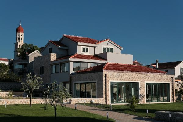 Luksusowa willa na wyspie Murter Betina 150 metrów od przystani w Betina i 300 metrów od plaży. 4 apartamenty w dwa, trzy kuchnie, 4 łazienki, 2 toalety, 2 pokoje gościnne, 3 jadalnie, balkon i każdy apartament, taras ze stołem i krzesłami na zewnątrz, grill, klimatyzacja / ogrzewanie w całym domu. Wifi internet. Parter to 32m2 basen, sauna, jacuzzi, sala fitness i miejsce na ognisko. Plac zabaw dla dzieci i parking na zewnątrz 6 samochodów.