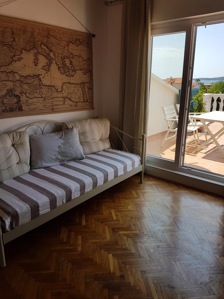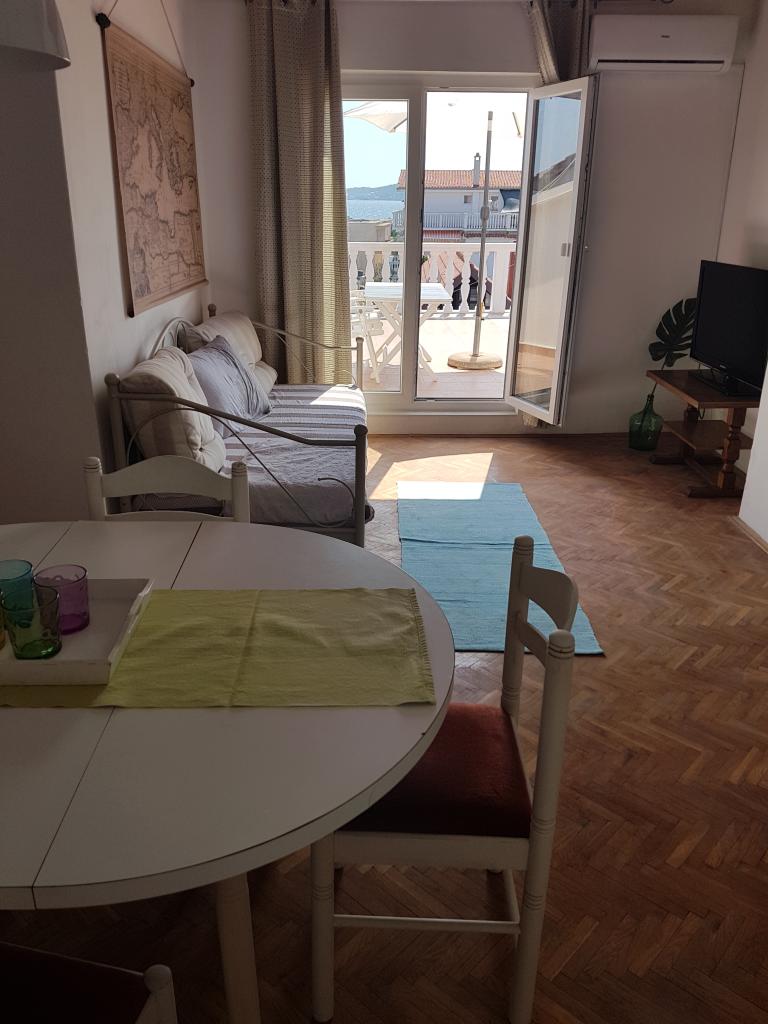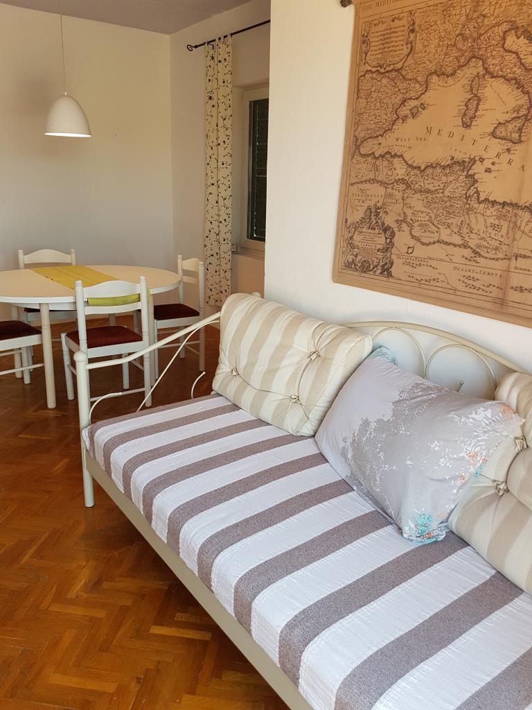 Komfortowe i przestronne mieszkanie w domu rodzinnym. Dwie sypialnie, salon, łazienka i toaleta oraz 3 tarasy. Apartament znajduje się 2 minuty spacerem od wszystkich udogodnień potrzebnych do przyjemnego wypoczynku - plaży, sklepu, restauracji, kawiarni, baru szybkiej obsługi, wypożyczalni sprzętu sportowego itp. Znajduje się w spokojnej części miasta i posiada piękny widok na morze i okolicę.