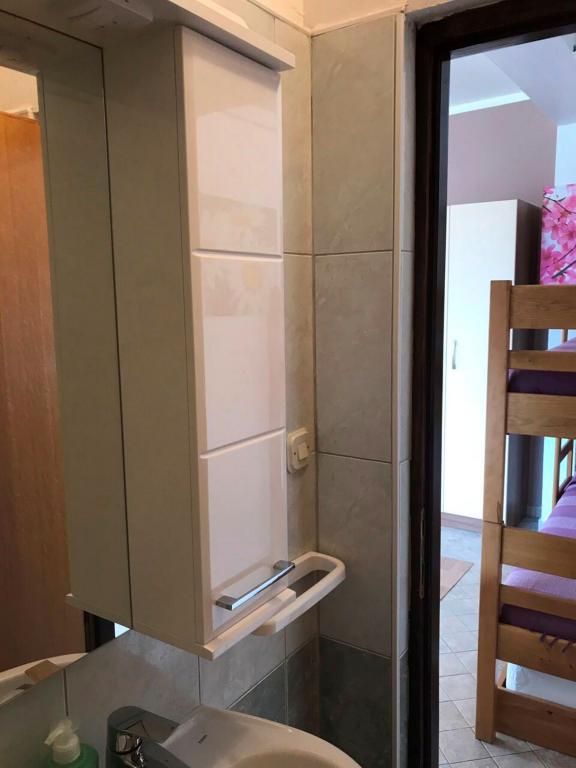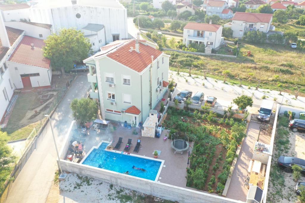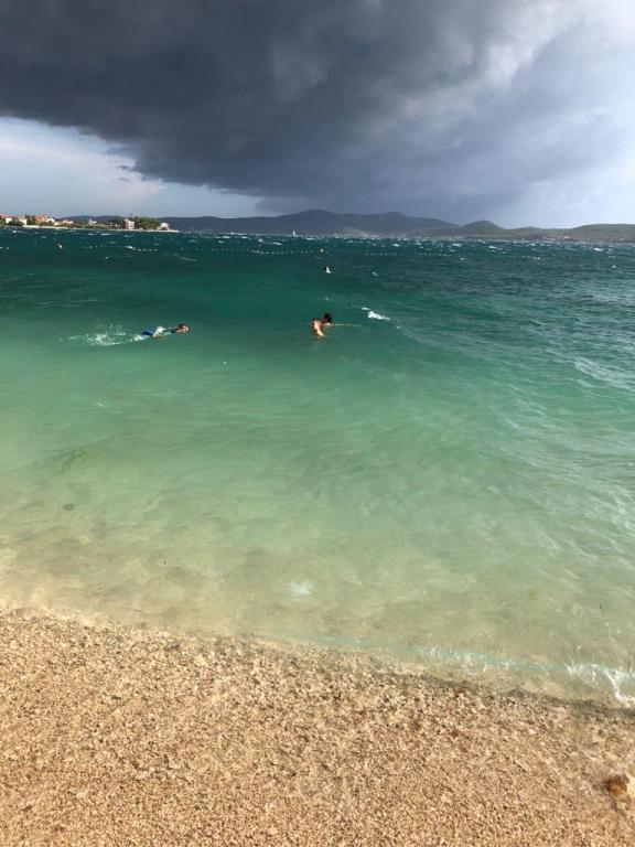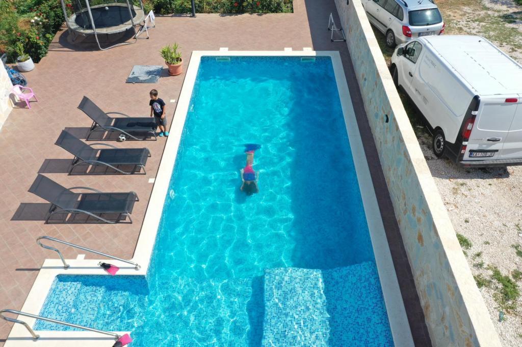 Wynajmę w pełni umeblowane mieszkanie, które składa się z salonu połączonego z kuchnią ze wszystkimi niezbędnymi naczyniami, płytą grzewczą, stołem i krzesłami, lodówką. Każdy apartament posiada łazienkę z prysznicem i znajduje się wewnątrz mieszkania. Apartamenty wyposażone są w klimatyzację i TV. Bezpłatny dostęp do internetu. Bezpłatny parking przed budynkiem. Korzystanie z tarasu przed apartamentem ze stołem i siedzeniami. Możliwość niedrogiego transportu taksówką do iz mieszkania (60kn/osoba, min dwie osoby). Basen jest dostępny do użytku od 01.06.-15.09.