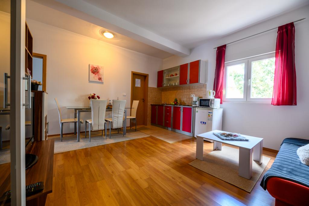 Apartamenty Anita znajdują się w rodzinnym domu w cichej okolicy daty, z dala od głównych dróg, z duży dziedziniec i ogród, który jest idealny dla rodzin z dziećmi. Apartamenty znajdują się w budynku, każdy z 2 podwójne łóżka + dwa dodatkowe łóżka, i tarasy szczególnie oddzielne łazienki z prysznicem i pralka centranom 2 apartamenty i osobiste mycia w jednym. Dla wszystkich gości są miejsca parkingowe na podwórku, i korzystania z ogrodu i grilla.