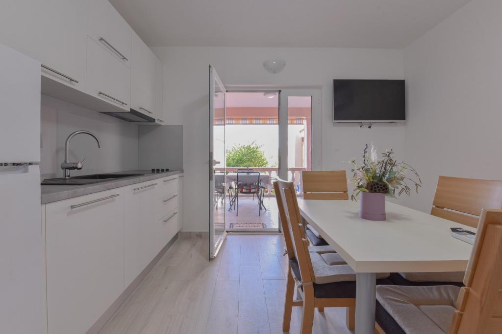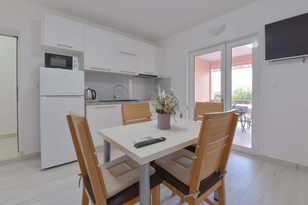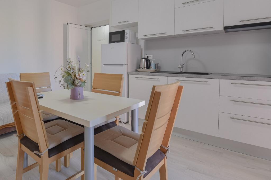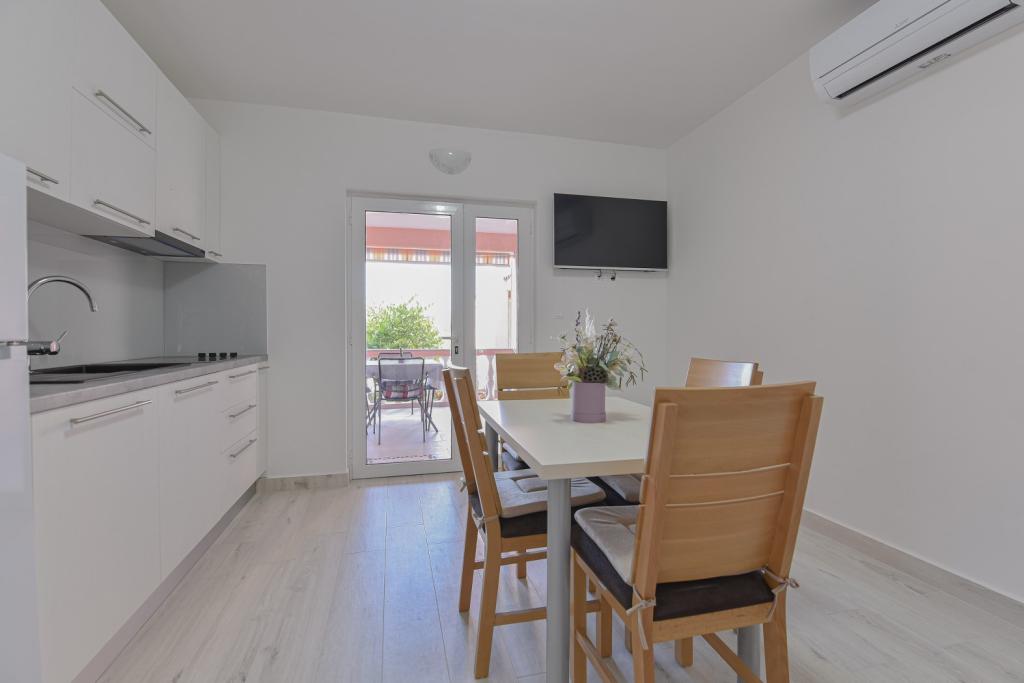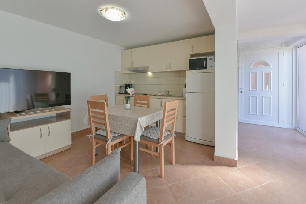 Gratulacje dla rodziny Frleti! Przyjęli nas ciepło i przyjaźnie. Mieszkanie było schludne, czyste, wyposażone w naczynia, pościel, telewizor, klimatyzację i WiFi. Tak jak jest na zdjęciach, tak jest w rzeczywistości. Mieszkanie jest przestronne, ładnie urządzone, łóżka są wygodne do spania. Posiada duży taras z markizą, z której można podziwiać widok na śródziemnomorski ogród rodziny Frlete. Duża liczba zadbanych plaż z czystym, błękitnym morzem i pięknie zdobionymi promenadami wzdłuż morza z dużą liczbą restauracji i barów. Idealny do ucieczki od hałasu i codziennego życia. Spokój, cisza z dźwiękiem świerszczy, krzykiem mew i szumem morza. Czysty hedonizm!