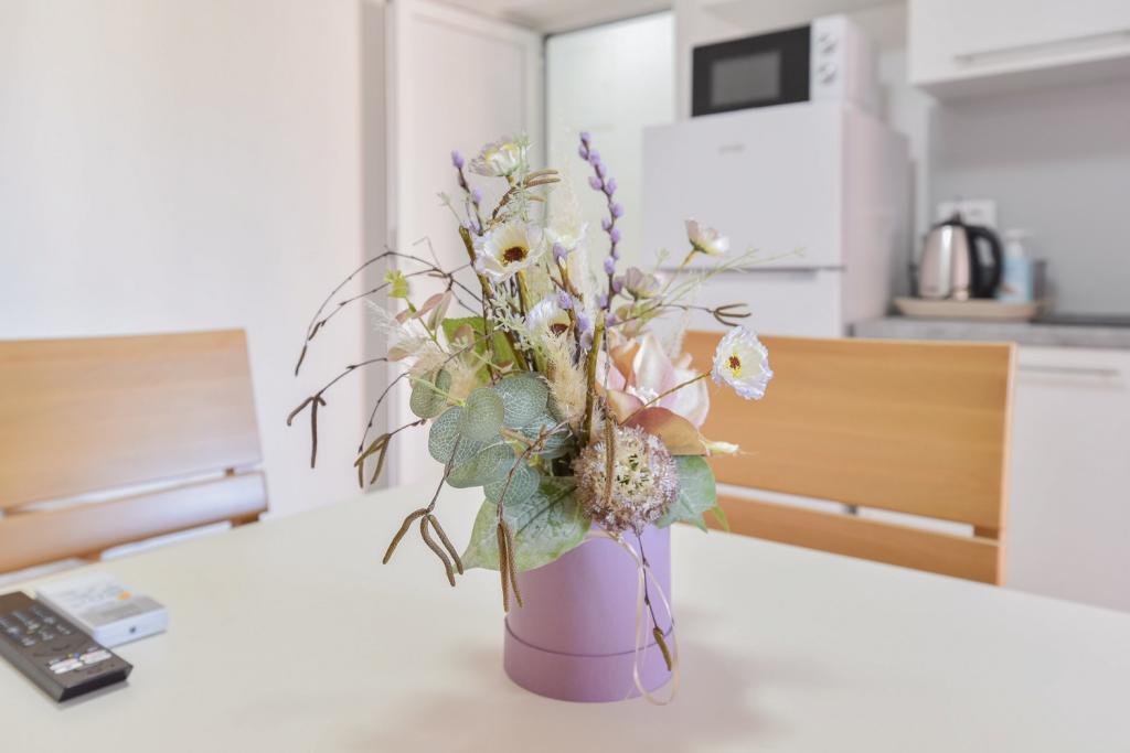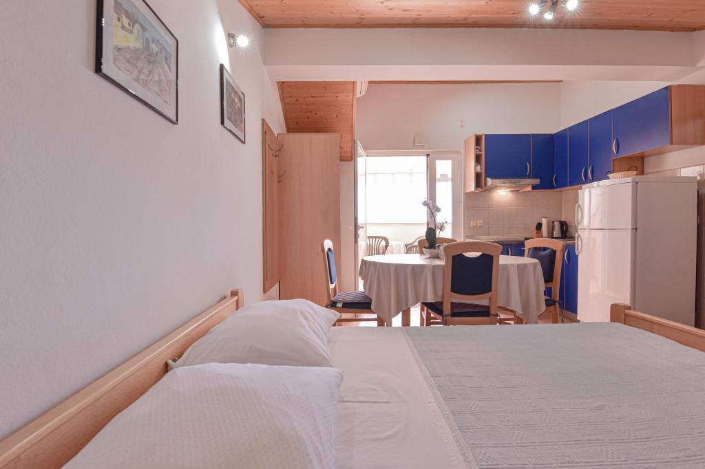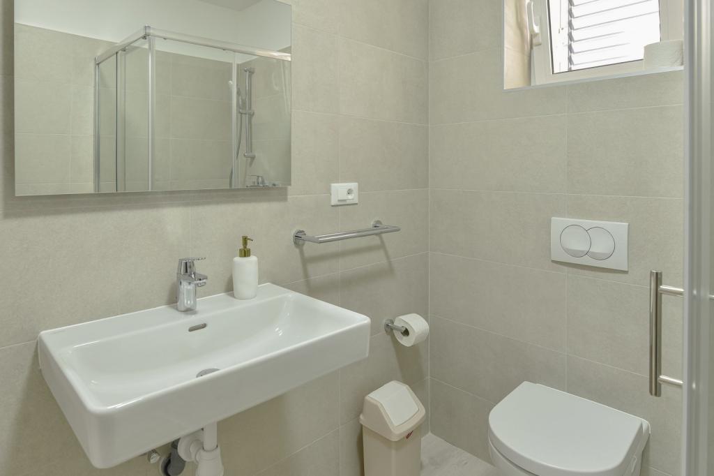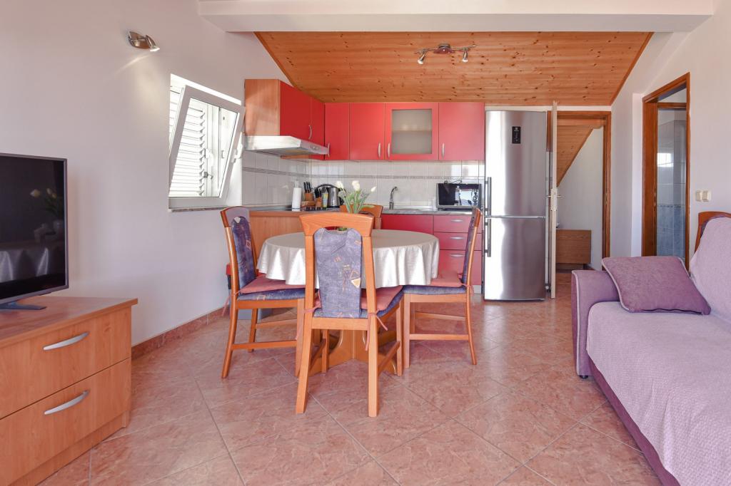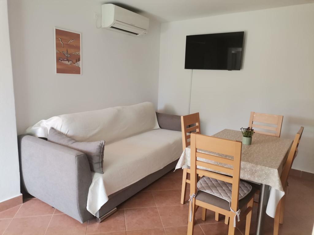 Gratulacje dla rodziny Frleti! Przyjęli nas ciepło i przyjaźnie. Mieszkanie było schludne, czyste, wyposażone w naczynia, pościel, telewizor, klimatyzację i WiFi. Tak jak jest na zdjęciach, tak jest w rzeczywistości. Mieszkanie jest przestronne, ładnie urządzone, łóżka są wygodne do spania. Posiada duży taras z markizą, z której można podziwiać widok na śródziemnomorski ogród rodziny Frlete. Duża liczba zadbanych plaż z czystym, błękitnym morzem i pięknie zdobionymi promenadami wzdłuż morza z dużą liczbą restauracji i barów. Idealny do ucieczki od hałasu i codziennego życia. Spokój, cisza z dźwiękiem świerszczy, krzykiem mew i szumem morza. Czysty hedonizm!