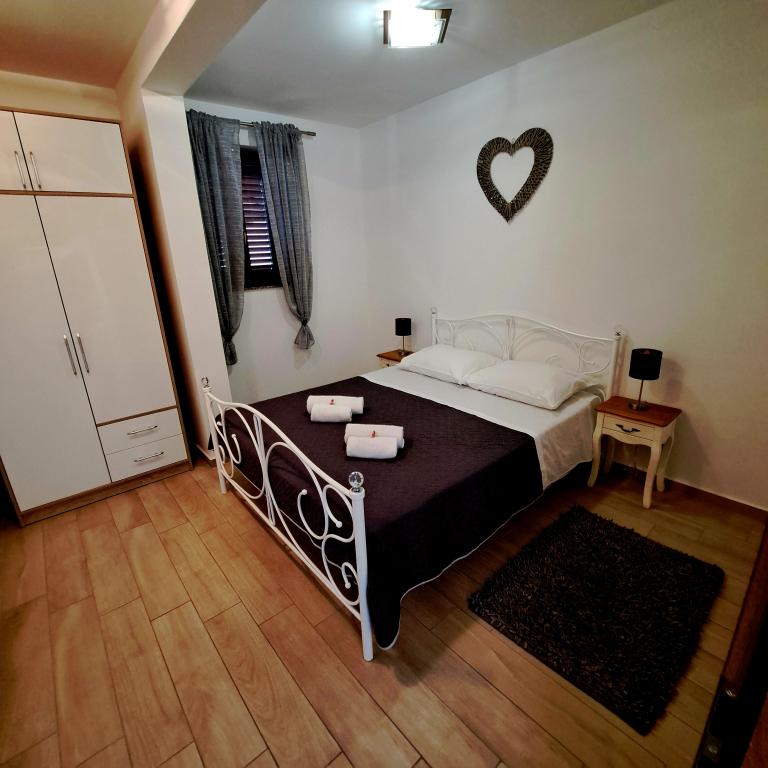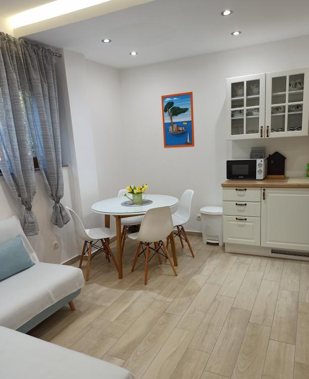 Piękny apartament, wszystko bardzo czyste i zadbane. Duży taras, podwórko, cień i spokój. Do plaży 2 min. A gospodarze bardzo mili, zawsze do Państwa dyspozycji, gościnni, cudowni. W otoczeniu naszych drogich przyjaciół czuliśmy się jak w domu. Apartamenty i gospodarzy polecam każdemu kto chce cieszyć się spokojem a jednocześnie być blisko morza.