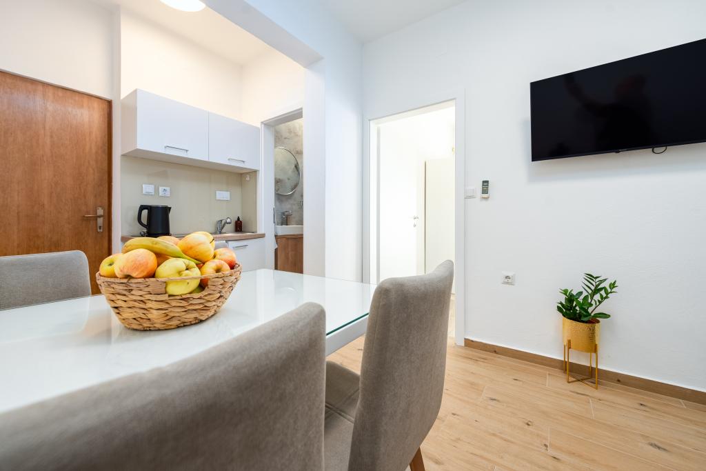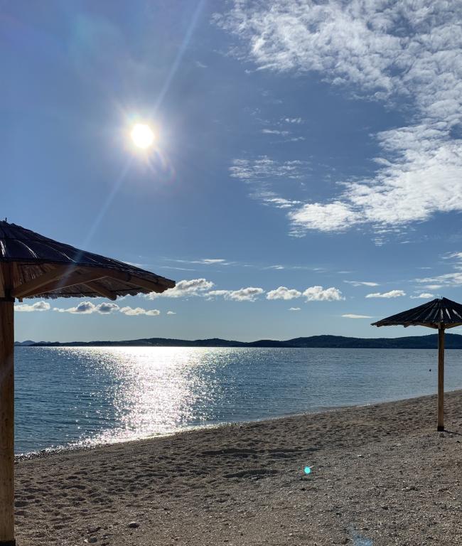 Apartamenty znajdują się tuż przy morzu i plaży. Bardzo czyste i pachnące. Właściciele są bardzo mili i pomocni, a na miejscu do dyspozycji gości są leżaki i dwa rowery. Supermarket oddalony jest o 1300 metrów (6 minut rowerem). Piekarnia znajduje się około 200 metrów, a centrum Bibinje, z tętniącą życiem atmosferą i licznymi pubami, oddalone jest o około 2 km. Zadar oddalony jest o 12 km. W pobliżu dostępne są Bolt i Uber, dzięki czemu można łatwo dotrzeć do różnych miejsc. Lotnisko oddalone jest o około 10 km. Spędziliśmy 10 cudownych nocy w apartamencie Suzy. Obok apartamentu znajduje się piękna plaża z dmuchanym zamkiem dla dzieci, wypożyczalnią sprzętu wodnego, budką z burgerami, cukiernią i bistro plażowym serwującym napoje.