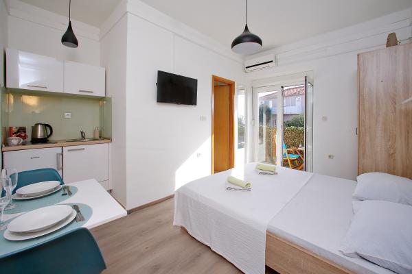 Studio ze wszystkim, czego potrzeba do wspaniałych wakacji. Piękna plaża tuż przed apartamentem i przemiła pani Suzy. Polecam wszystkim na spokojny wypoczynek.