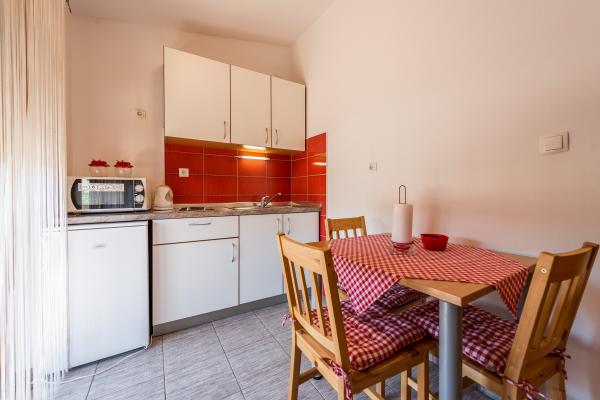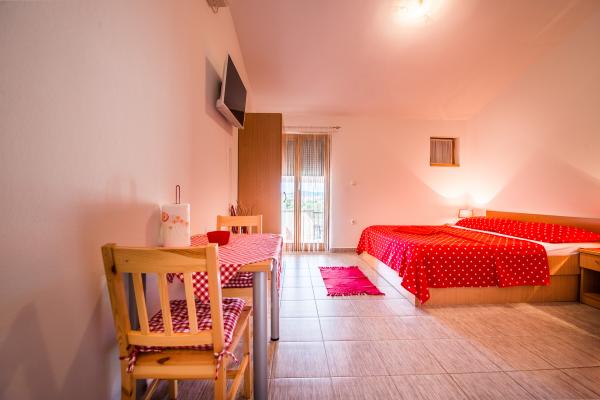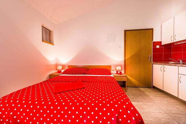 Oferujemy dwa nowo urządzone apartamenty typu studio o różnych rozmiarach. Każdy z nich wyposażony w pełną akcesoriów kuchennych, ręczników, a jeśli trzeba, również grill. Jest to możliwe do wykorzystania w ogrodzie. W apartamentach znajduje się także telewizor z dostępem do kanałów telewizji satelitarnej oraz klimatyzację. Apartamenty Duje posiadają tarasy z widokiem na ogród, z małym tarasem apartamentów roztacza się widok na morze. Dla swojego miejsca parkingowe. Do morza jest około 3 min. spacer