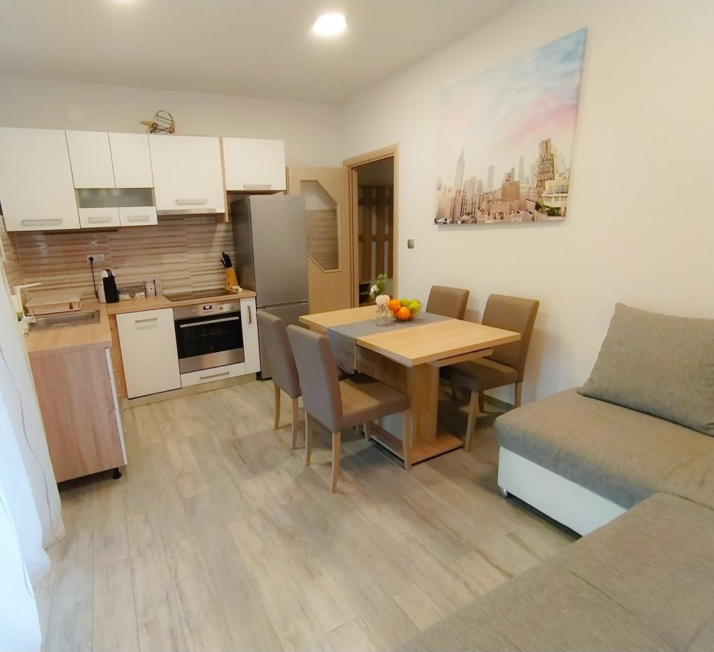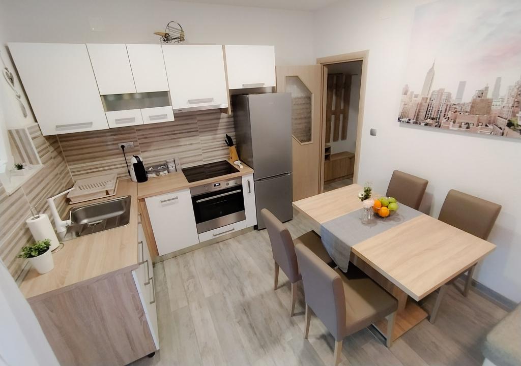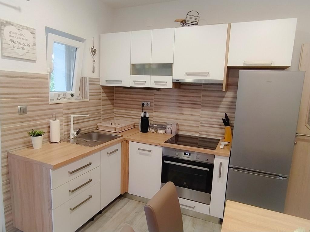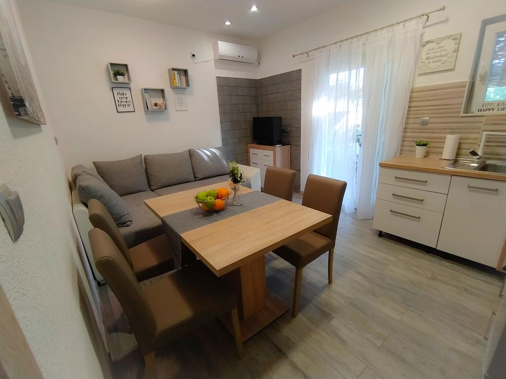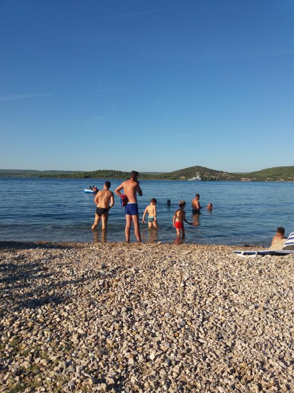 Apartament Baza znajduje się w spokojnej miejscowości Bilice, między Szybenikiem a Parkiem Narodowym Krka. Powierzchnia apartamentu wynosi 35 m2 i taras 18 m2. Składa się z sypialni z dwoma łóżkami, które można połączyć i rozdzielić, w pełni wyposażonej kuchni (piekarnik, zamrażarka, pralka) i salonu z dwoma łóżkami. Łazienka jest przestronna i można bezpłatnie korzystać z pralki. Mieszkanie posiada klimatyzację, Wi-Fi, telewizor (telewizja satelitarna, Smart TV). Jeśli przyjeżdżasz z dziećmi, możemy zaoferować łóżeczko turystyczne i karmnik. Do dyspozycji Gości jest prywatny parking, duży dziedziniec i grill. Podwórko jest ogrodzone i wystarczająco duże, aby bawić się, jeśli przyjedziesz z mniejszymi dziećmi. Odległość do plaży i kawiarni z placem zabaw dla dzieci wynosi 250 m, 5 minut pieszo. Blisko autostrady.
