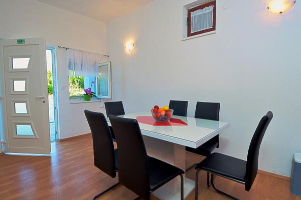 Apartament Dalmacji - Bilice, nowo umeblowane iw pełni wyposażone, 40 m2 na parterze i 70 m2 na pierwszym piętrze, z dużym ogrodem i basenem. Apartamenty znajdują się w spokojnym miejscu Slavica - Bilice niedaleko Šibenika, niedaleko jeziora Prokljan. Idealny dla osób z dziećmi i osób pragnących ciszy, spokoju i relaksu, a także w pobliżu dwóch parków narodowych Krka i Kornati. Dom położony jest 5 minut jazdy samochodem od plaży, 10 minut od centrum Sibenik.