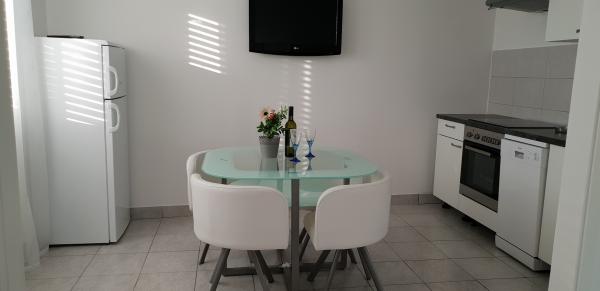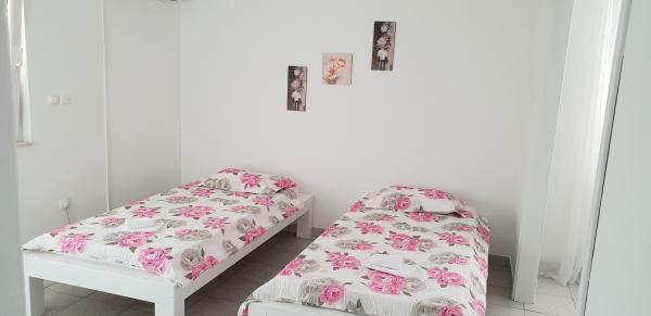 Na brzegu jeziora Prokljansko (zatoka) wynajmujemy trzy w pełni wyposażone apartamenty z basenem dla 12 osób. Obiekt położony jest blisko plaży, placu zabaw dla kawiarni, restauracji i mini marketu. Można również korzystać z Parku Narodowego Krka i Kornati. APARTAMENTY 1 i 2 są dla 8 osób i znajdują się na piętrze domu rodzinnego, w pełni wyposażone, każdy składa się z sypialni z podwójnym łóżkiem i przestronnego salonu z dwoma dostawkami dla dwóch osób, kuchni, łazienki i tarasu. APARTAMENT 3 jest dla 4 osób i znajduje się na 2 piętrze domu rodzinnego, w pełni wyposażony i składa się z jednego pokoju z podwójnym łóżkiem i dwóch dodatkowych łóżek dla dwóch osób, kuchni, łazienki i przestronnego tarasu. Apartamenty posiadają własny ogrodzony parking. Wszystkie pokoje są klimatyzowane i wyposażone w pralkę i zmywarkę do naczyń oraz WiFi.