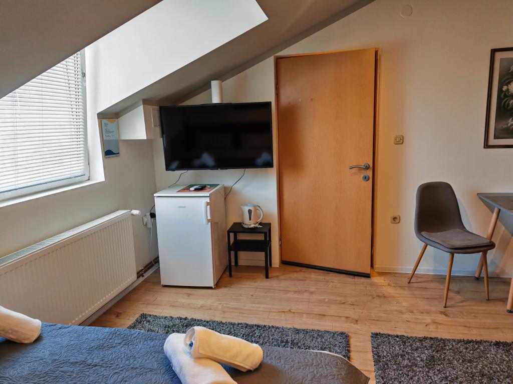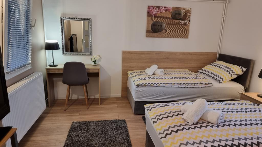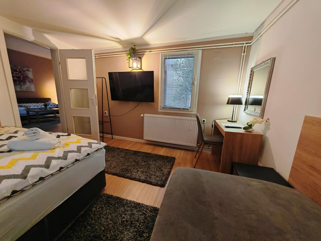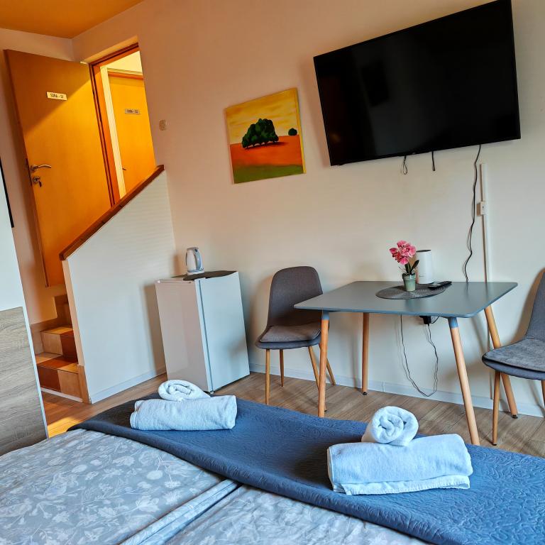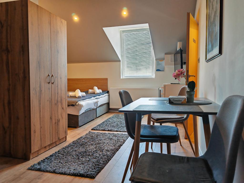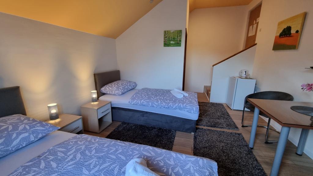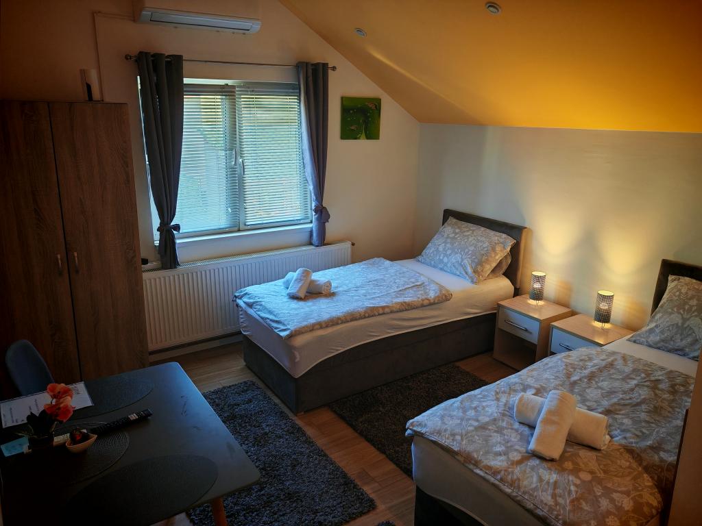 Kwatery prywatne Corina, nowoczesne i komfortowo wyposażone pokoje i apartament w spokojnej miejscowości Bilje, na przedmieściach Osijek, 3 km od parku przyrody Kopački rit i 5 km od miasta Osijek (Tvrđe). mogą cieszyć się dobrodziejstwami natury i budzić się przy zapachu świeżych kwiatów i śpiewie ptaków. Pokój (podwójny 23 m2) Wyposażenie pokoju: - widok na ogród - SMART TV 126 cm (telewizja internetowa, Netflix) - klimatyzacja - żelazko - stół z dwoma krzesłami - centralne ogrzewanie - moskitiera - szafa - łazienka z prysznicem i WC - suszarka do włosów - bezpłatny zestaw kosmetyków - pościel - bezpłatny bezprzewodowy dostęp do Internetu. Pokój trzyosobowy (25 m2) Wyposażenie pokoju: - widok na ogród - SMART TV 110 cm (telewizja internetowa, Netflix) - klimatyzacja - żelazko - stół z dwoma krzesłami - centralne ogrzewanie - moskitiera - łazienka z prysznicem i WC Apartament 46 M2 ogród widok - SMART TV 120 cm (telewizja internetowa-salon) Smart TV 126 cm sypialnia pralka