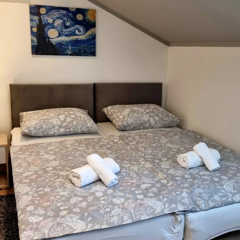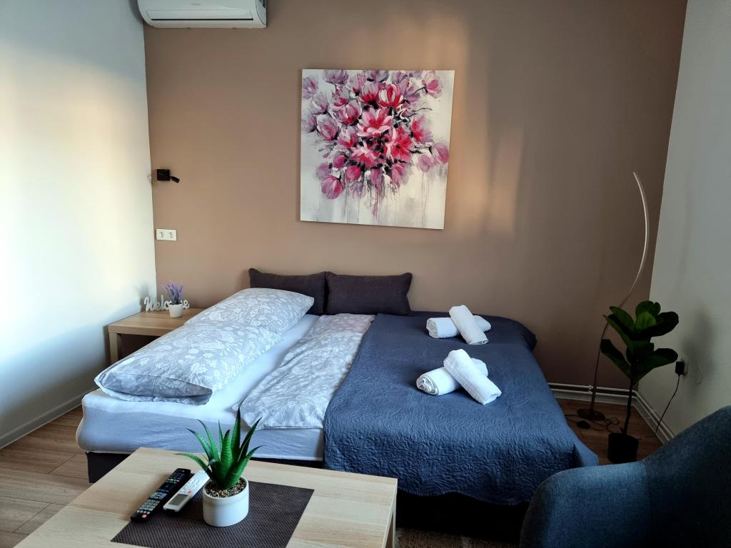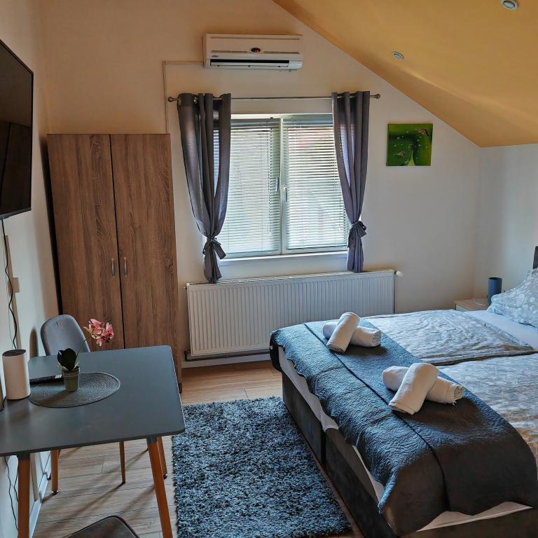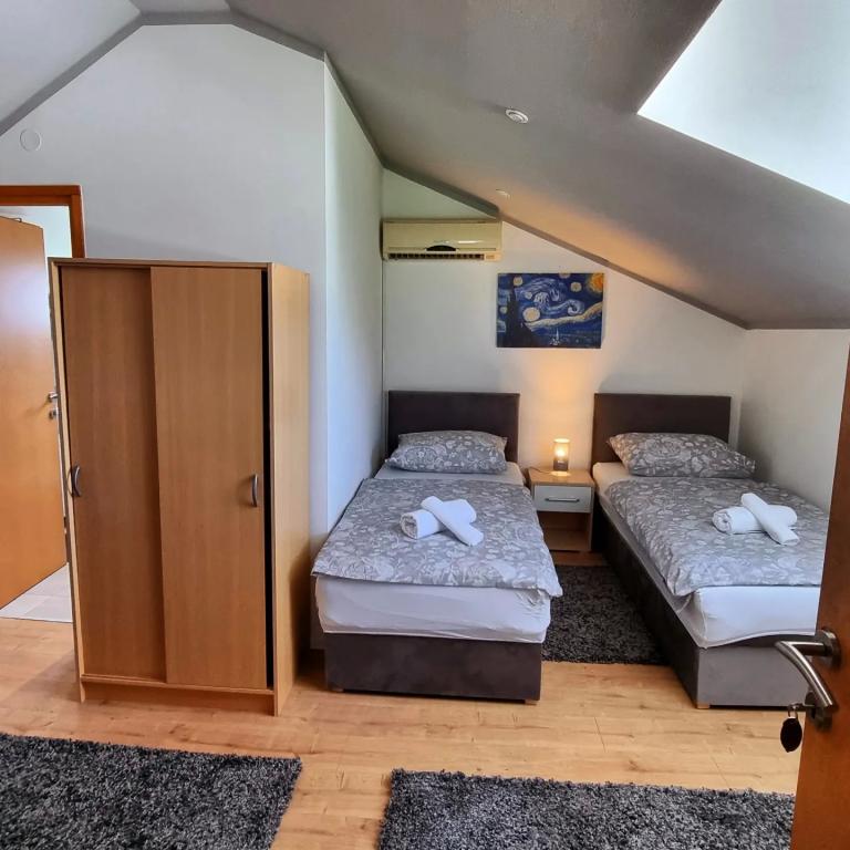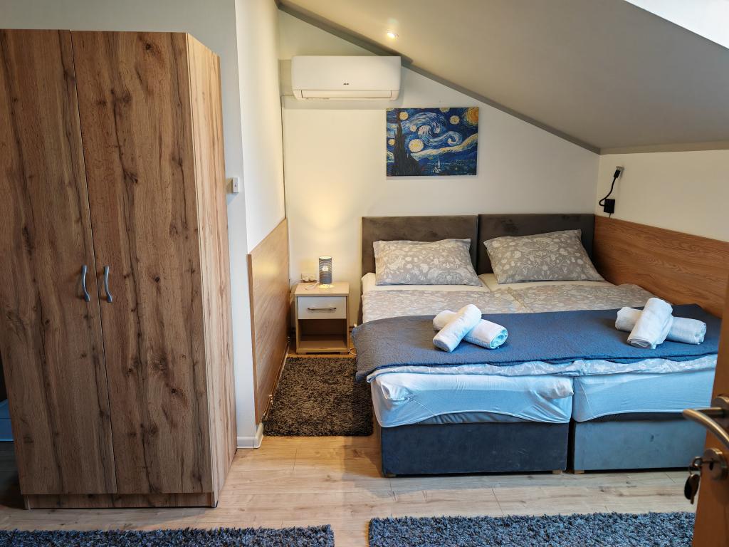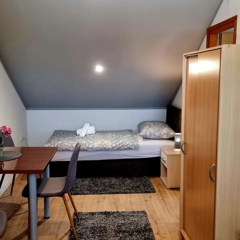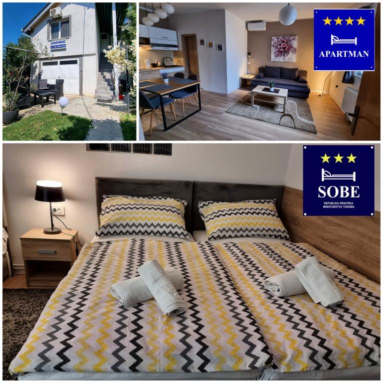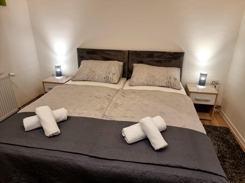 Kwatery prywatne Corina, nowoczesne i komfortowo wyposażone pokoje i apartament w spokojnej miejscowości Bilje, na przedmieściach Osijek, 3 km od parku przyrody Kopački rit i 5 km od miasta Osijek (Tvrđe). mogą cieszyć się dobrodziejstwami natury i budzić się przy zapachu świeżych kwiatów i śpiewie ptaków. Pokój (podwójny 23 m2) Wyposażenie pokoju: - widok na ogród - SMART TV 126 cm (telewizja internetowa, Netflix) - klimatyzacja - żelazko - stół z dwoma krzesłami - centralne ogrzewanie - moskitiera - szafa - łazienka z prysznicem i WC - suszarka do włosów - bezpłatny zestaw kosmetyków - pościel - bezpłatny bezprzewodowy dostęp do Internetu. Pokój trzyosobowy (25 m2) Wyposażenie pokoju: - widok na ogród - SMART TV 110 cm (telewizja internetowa, Netflix) - klimatyzacja - żelazko - stół z dwoma krzesłami - centralne ogrzewanie - moskitiera - łazienka z prysznicem i WC Apartament 46 M2 ogród widok - SMART TV 120 cm (telewizja internetowa-salon) Smart TV 126 cm sypialnia pralka