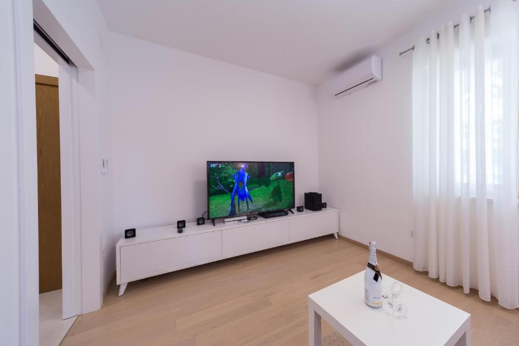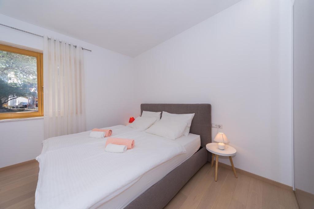 Nowo urządzony i nowocześnie wyposażony apartament 2 minuty spacerem od plaży Dražice, która ma Błękitną Flagę, co oznacza czystość morza i plaży. Mieszkanie składa się z 2 pokoi z łóżkiem king size 2m x 2m oraz rozkładanej sofy dla 2 osób. Parking znajduje się obok mieszkania, w każdym pokoju znajduje się telewizor LCD, a także w salonie, Wi-Fi jest bezpłatny i istnieje możliwość korzystania z PlayStation 4 z kilkoma grami. Mieszkanie ma również 2 klimatyzatory i są one wliczone w cenę mieszkania. Jeśli jest więcej niż 6 osób, istnieje możliwość zakwaterowania w pobliżu apartamentów w obozie „Mia” i w obozie Diana