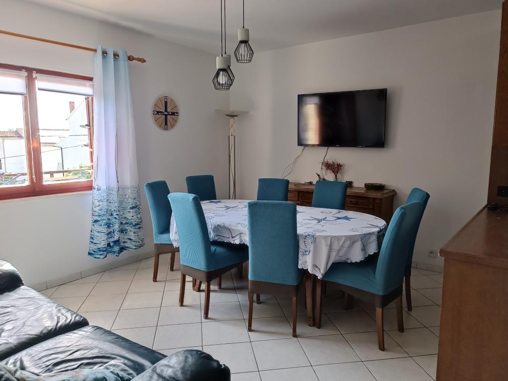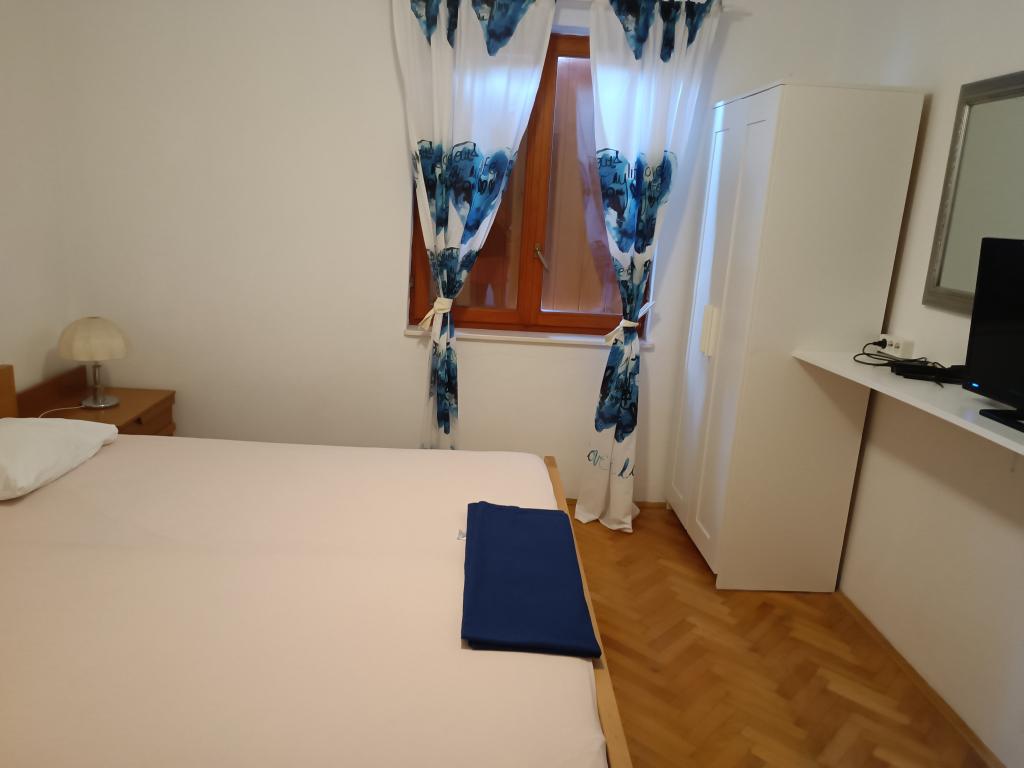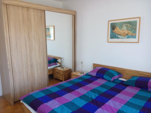Apartament położony jest w spokojnej części miasta, 5 minut od centrum i 10 minut od plaży. Apartament 9 znajduje się na pierwszym piętrze i składa się z 4 pokoi, kuchni z jadalnią, łazienki z toaletą oraz osobnej toalety. W pokojach znajdują się łóżka dwuosobowe, z wyjątkiem jednego, do którego można wstawić dodatkowe łóżko, dzięki czemu 9 osób może wygodnie spać bez konieczności korzystania z kanapy.