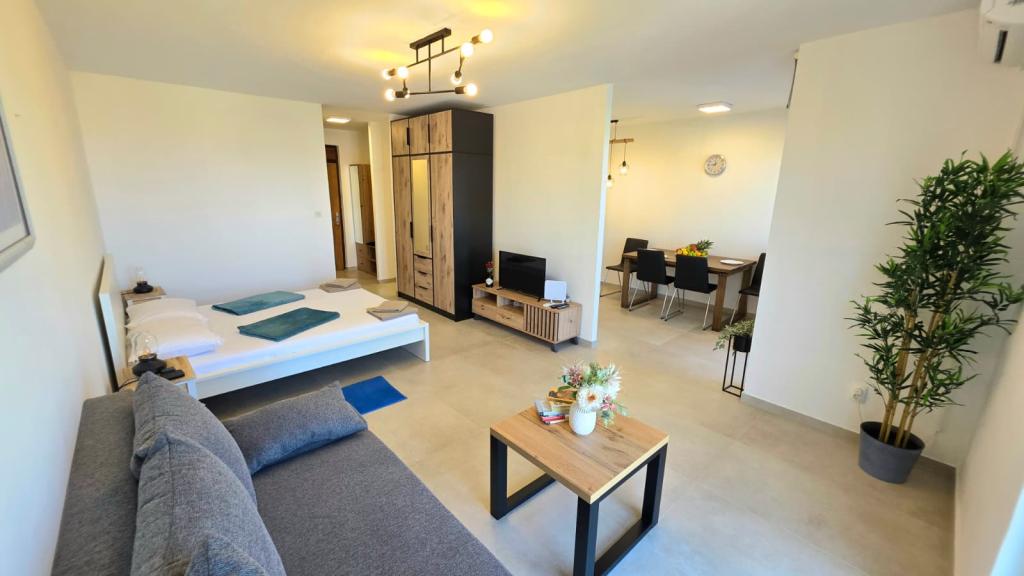 Nowo wyremontowany apartament w centrum Biogradu. W pobliżu znajdują się wszystkie niezbędne udogodnienia, takie jak restauracje, kawiarnie, cukiernie, sklepy itp. Plaża oddalona jest o 5 minut spacerem. Z balkonu roztacza się widok na morze i centrum Biogradu. Apartament wyposażony jest w zmywarkę i pralkę. W pobliżu znajduje się dworzec autobusowy. Apartament znajduje się na czwartym piętrze w budynku bez windy.