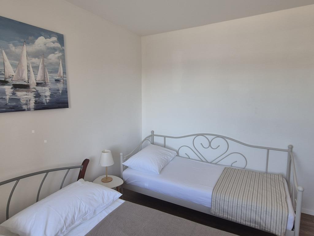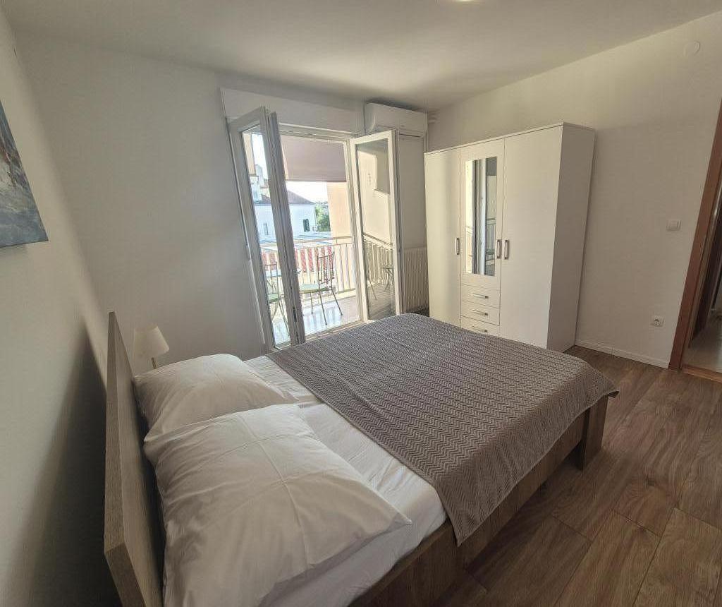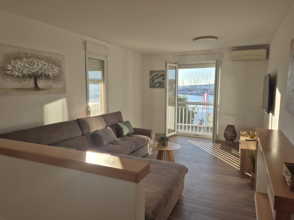 Apartament w Biogradzie na Moru, w samym centrum miasta, w pierwszym rzędzie od morza, z pięknym widokiem na morze. Apartament znajduje się 20 m od morza, a dwie plaże oddalone są o około 450 m. Dwa balkony, z których można podziwiać piękny widok na morze i miasto. Idealny dla rodziny, a wszystkie udogodnienia w zasięgu ręki. Dwie sypialnie dla 2+3 osób.