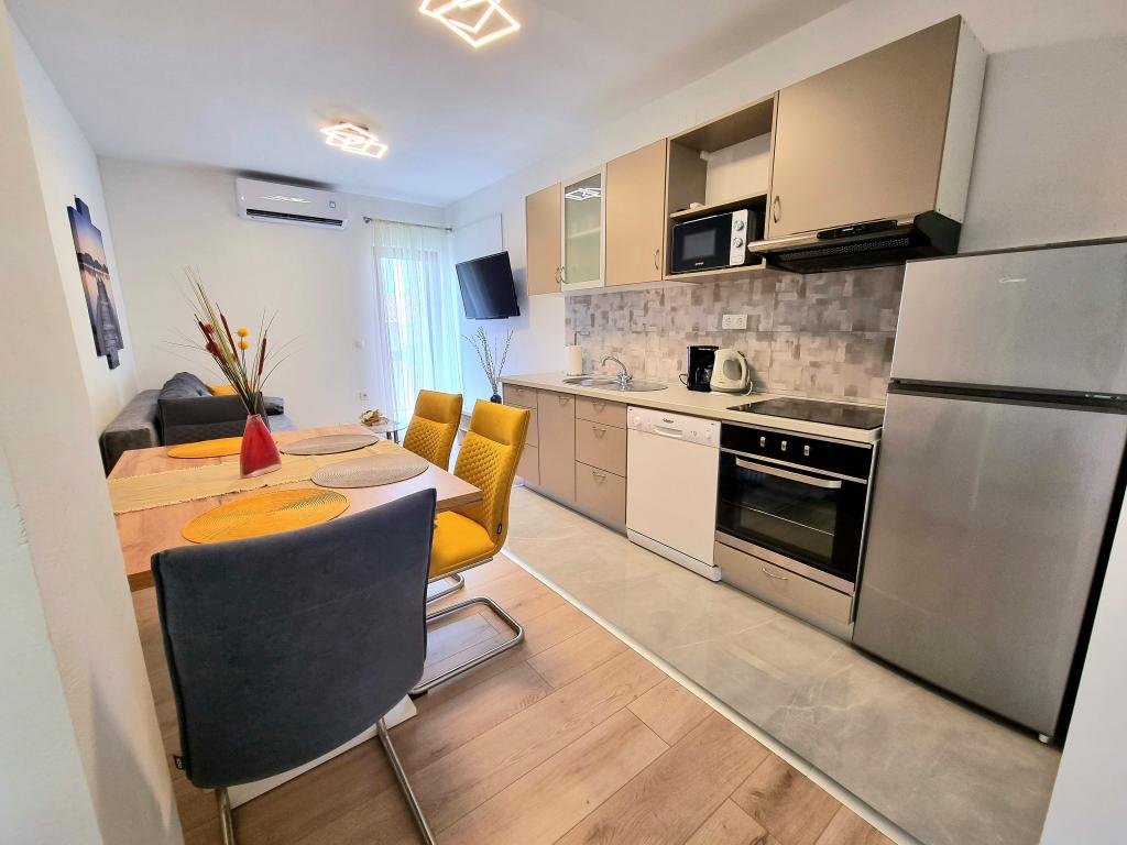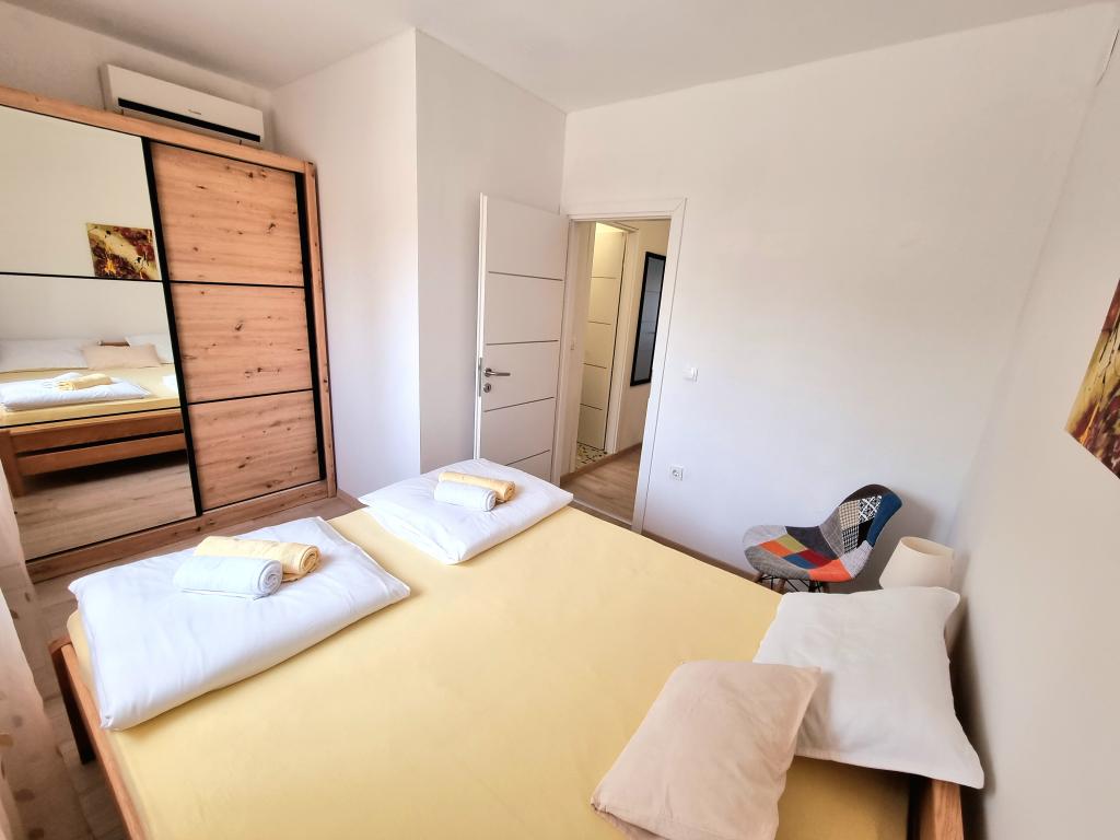 W pełni wyposażony i nowoczesny apartament z dwiema sypialniami dla 4 osób w Biogradzie na Moru. Obiekt położony jest w spokojnej części centrum, zaledwie kilka minut spacerem od plaży Dražice. Promenada i nabrzeże z restauracjami i kawiarniami znajdują się w równie bliskiej odległości. Na terenie obiektu znajduje się parking na jeden samochód. Apartament składa się z dwóch oddzielnych pokoi, każdy z własną klimatyzacją, dwiema łazienkami i w pełni wyposażoną kuchnią.