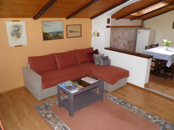 Przytulny sekund 5-pokojowe mieszkanie na piętrze (poddasze). Mniej niż pięć minut od centrum handlowego, a mniej niż 10 minut od plaży. Posiadamy własny parking w cieniu (na podstawie mianowania i na dwa samochody). Dostępne w kamieniu wbudowane kominkiem (grill). Goście mogą korzystać z warzywa z własnego ogrodu (pomidory, papryka, ogórki, itp.) Mieszkanie ma dwa pokoje dwuosobowe z kanapą w salonie, DVB-T / S odbiornik, odtwarzacz DVD z kolekcją filmów. Kuchnia (półotwarty concept) we wszystkie niezbędne urządzenia. Dwa balkony (salon i jednej z sypialni). Balkon salonie jest całkowicie w cieniu. Goście mają nieograniczony dostęp do Internetu, a do 2, 5 MB / s.