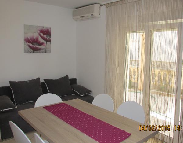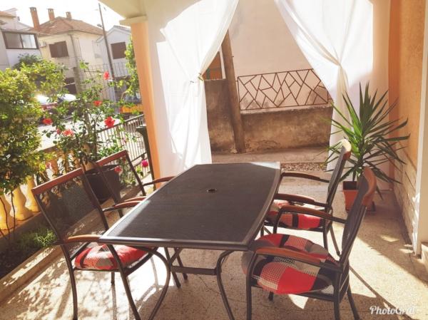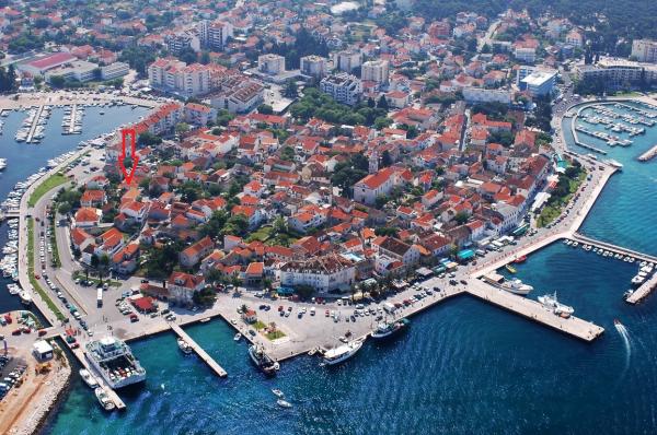 W pełni umeblowany apartament (2 sypialnie, łazienka, jadalnia) znajduje się w starej części miasta. Mimo, że znajduje się w centrum miasta apartament znajduje się w miejscu, co zapewnia spokój przez cały dzień i noc. W pobliżu domu znajduje się miejski nabrzeża, na rynku miasta, wiele restauracji, pizzerii i restauracji. Ponadto, na 10 minut spacerem od plaży, która została wyróżniona Błękitną Flagą. Mieszkanie jest bardzo atrakcyjna dla miłośników turystyki morskiej, gdyż znajduje się w odległości 100 metrów od przystani. Z użytkownikami mieszkań mają do dyspozycji krytym parkingiem na 2 samochody, grill i taras. Mieszkanie jest atrakcyjna przez to, że klienci mogą zaparkować samochód w bezpiecznym miejscu, a to ze względu na położenie mieszkania nie trzeba używać cały okres odpoczynku, który jest idealnym miejscem, aby uniknąć problemów z ruchu i wypłaty parking. Korzystanie z Wi-Fi i klimatyzacji jest bezpłatne.