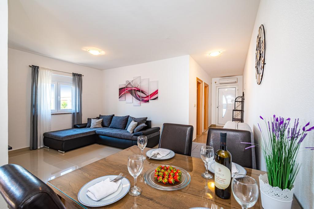 Wynajmę 5 jednopokojowych apartamentów z basenem, które znajdują się w spokojnej części Biogradu. Każdy apartament posiada w pełni wyposażoną kuchnię (z naczyniami), pokój z podwójnym łóżkiem (pościel), pokój dzienny z dużą rozkładaną sofą (dla dwóch osób), łóżeczko dziecięce, łóżko pojedyncze. (TV, satelita), WC, balkon, grill, parking, klimatyzacja. Basen (10 × 5 m) posiada pływanie w przeciwprądzie, hydromasaż i lodowe oświetlenie. Obiekt jest monitorowany, a apartamenty przeznaczone są wyłącznie na wakacje, ponieważ znajdują się w domu rodzinnym, więc nie są przeznaczone do zabawy i imprezowania. Każdy apartament może pomieścić 4-5 osób. Miasto jest idealne dla dzieci, młodszych i starszych ze względu na różnorodną ofertę rozrywkową.
