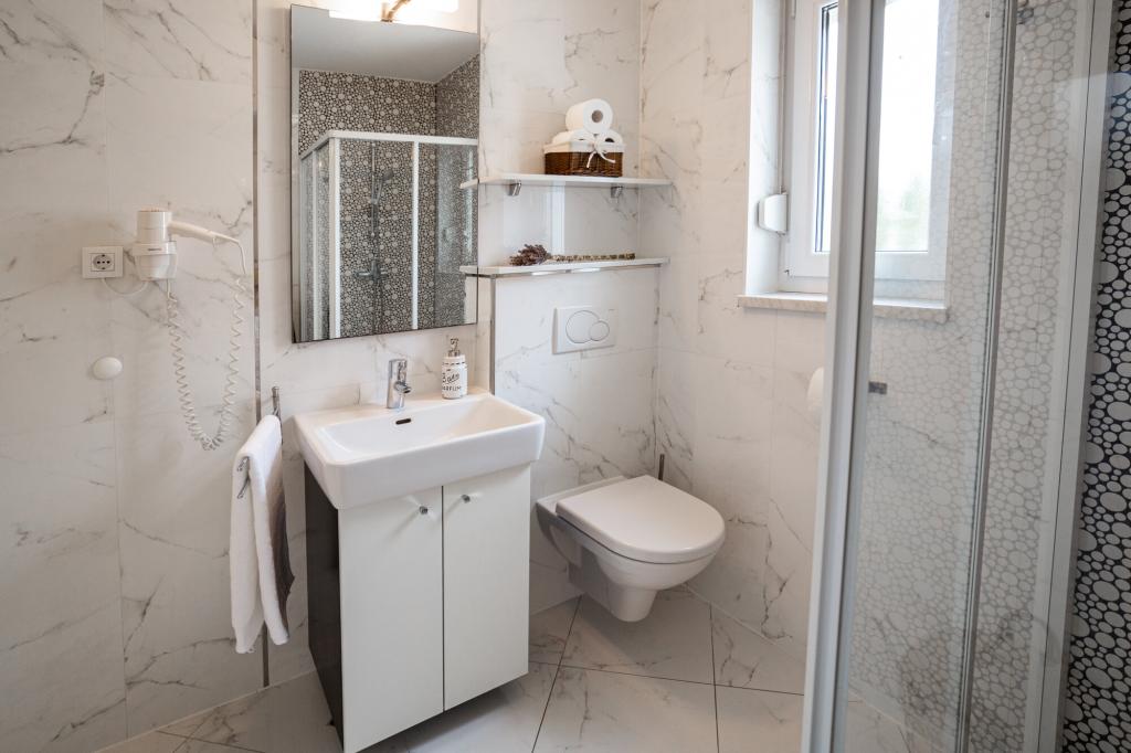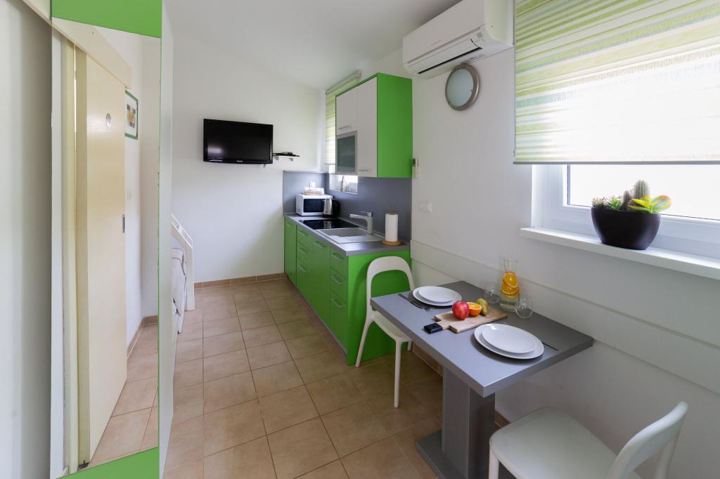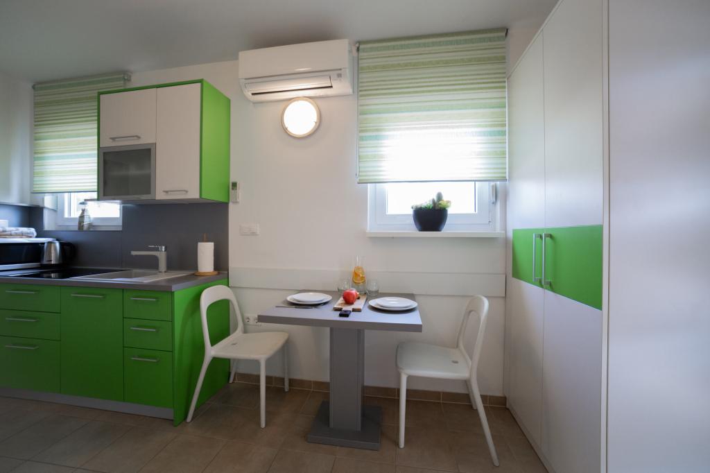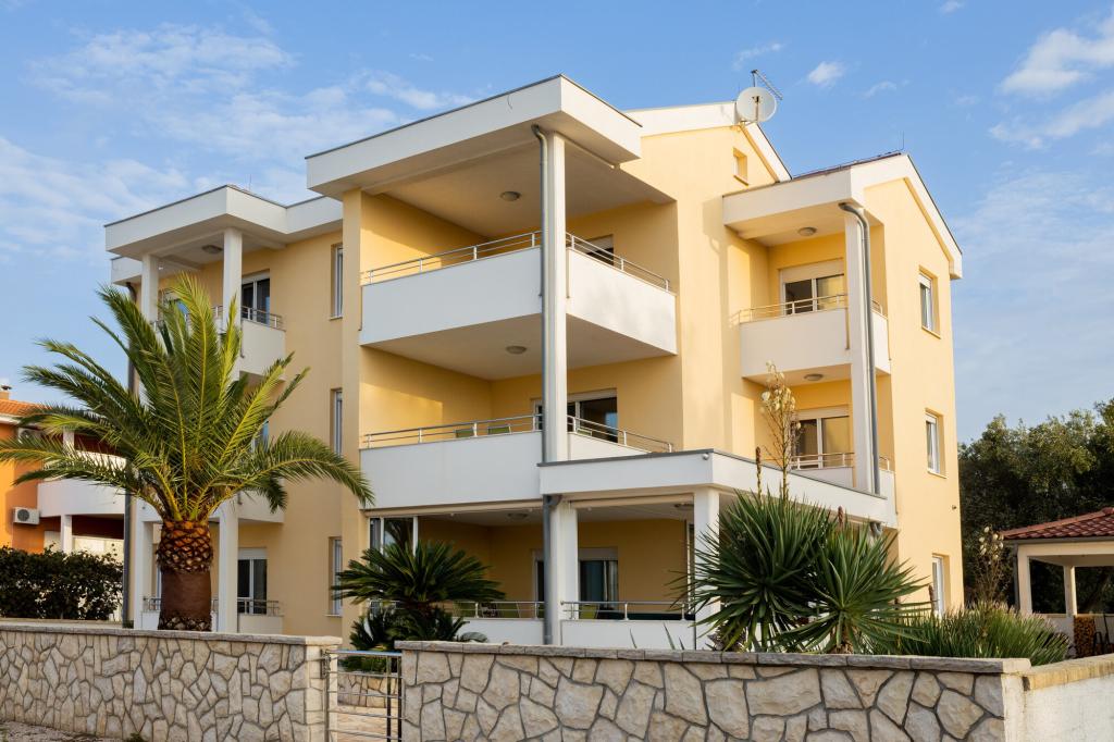 Apartamenty Jasna znajduje się w prywatnym domu w odległości zaledwie 280 metrów od plaży, w otoczeniu pięknej przyrody. Obiekt składa się z 7 apartamentów, z których 6 czynszów. Trzy apartamenty 40 m2 dla dwóch do czterech osób, dwa apartamenty 77m2 dla 4-6 osób i jeden apartament dla dwóch do trzech osób. Wszystkie jednostki są wyposażone w telewizję satelitarną i klimatyzację, a także taras z widokiem na morze. W zaciszu zieleni i duży wspólny taras na parterze, do Państwa dyspozycji jest odkryty grill i parking samochodowy na terenie stoczni.