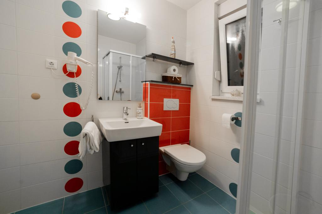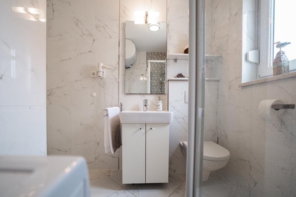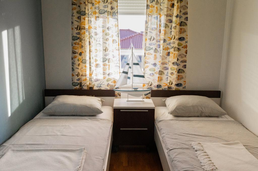 Właściciele apartamentu są wspaniali, przyjaźni i uprzejmi. Przyjechaliśmy o ósmej rano z powodu tłumów, właściciel od razu nas wpuścił, bez względu na to, co było napisane po 10:00 lub 14:00. Wymeldowanie było o 10:00, ale mogliśmy wykorzystać dzień na pływanie i uniknięcie tłumów, ponieważ mogliśmy zostawić u nich samochód. Apartament jest bardzo ładnie urządzony, ze wszystkim, czego potrzeba, od suszarki do włosów i pralki, kuchnia jest również bardzo dobrze wyposażona, więc czujesz się jak w domu. Bardzo ładny taras i widok na morze. Łóżka są wygodne, a w każdym oknie są moskitiery, więc nie ma problemu z komarami, jak to bywa. Bardzo miło spędziliśmy czas i polecam to miejsce innym. Dziękujemy właścicielom.