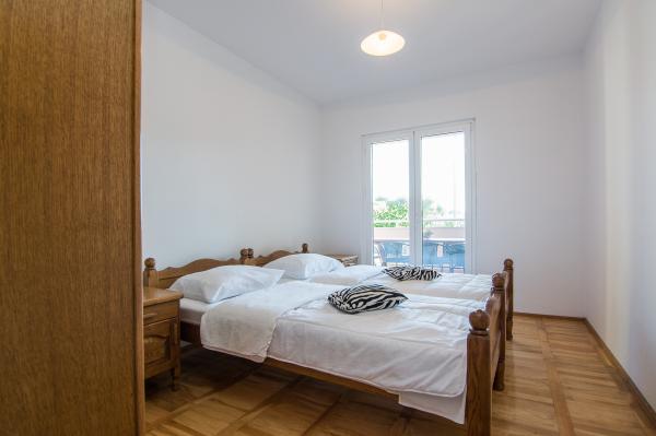 Całkowicie i nowocześnie wyposażone apartamenty, spokojna okolica, tylko 3-4 minuty spacerem od centrum handlowego Lidl i 5 minut owoców i artykułów spożywczych. Również w odległości 5 minut pieszo znajduje się centrum handlowe Bure, centrum miasta znajduje się 10 minut pieszo, plaża jest mniej niż 10 minut spacerem, apartamenty są w spokojnej części Biograd n / m. Apartamenty są przestronne do 130 m2 z dużym tarasem.