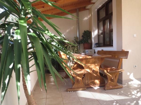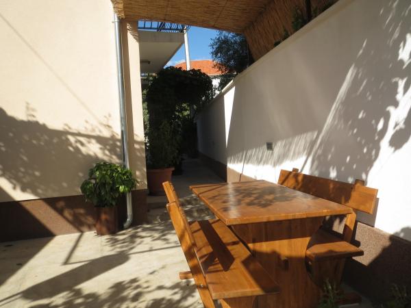 Apartamenty znajdują się na parterze budynku. Większy apartament posiada parking na podwórku, mniejszy apartament posiada duży taras, bezpłatny parking na zewnątrz podwórka. Dom znajduje się 50 m od morza, blisko centrum w spokojnej części miasta, w pobliżu mariny, 150 m od plaży, wszędzie blisko restauracje, sklepy, apteki, jednym słowem po przyjeździe park i nie korzystać z samochodu do końca wakacji.