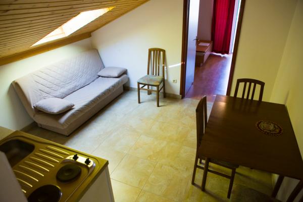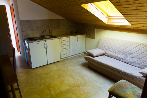 STREFA WOLNA OD KORONY - W pełni wyposażone apartamenty i przyczepa stacjonarna w pięknym miejscu w spokojnej części Biogradu na moru. Znajdują się w sosnowym lesie, w pobliżu głównych plaż miejskich, piaszczystej plaży Soline i żwirowej plaży Dražica, centrum tenisowego Biograd, a od centrum Biogradu na piechotę jest tylko 10 minut. Plaża znajduje się 5 minut spacerem w cieniu sosnowego lasu. Nie ma potrzeby korzystania z samochodu, wszystkie udogodnienia są na wyciągnięcie ręki. Apartamenty mogą pomieścić maksymalnie 3 osoby, powierzchnia 30 m2, a przyczepa stacjonarna 4 osoby. Są w pełni umeblowane i wyposażone w klimatyzację oraz posiadają balkony (z widokiem na las i miasto). Bezpłatny bezprzewodowy dostęp do Internetu. Zwierzęta mile widziane. Przed apartamentowcem dostępne są bezpłatne miejsca parkingowe. Standardowe mieszkania znajdują się na parterze, pierwszym i drugim piętrze, a mini apartament znajduje się na poddaszu (poddasze) z loggią.