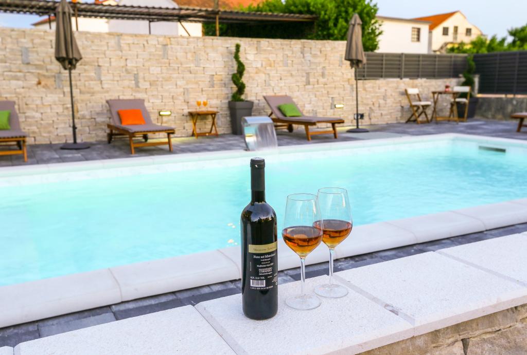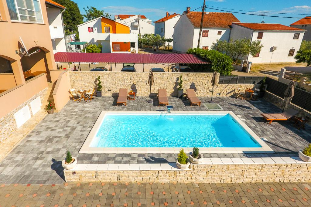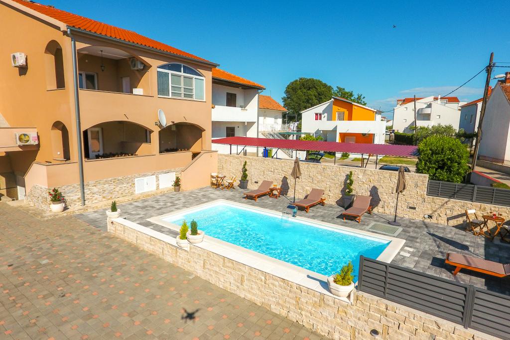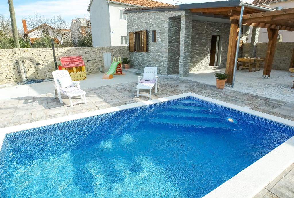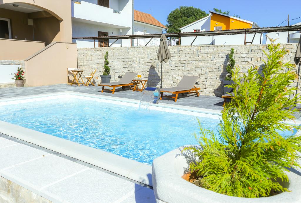 nowocześnie wyposażone apartamenty w spokojnej części Biogradu. bardzo odpowiedni dla rodzin z dziećmi. Duże podwórko z przesuwanymi drzwiami elektrycznymi, plac zabaw dla dzieci. możliwość korzystania z tawerny do grillowania i spotkań towarzyskich. blisko piaszczystej plaży z mnóstwem udogodnień i restauracji, aquaparku, placu zabaw dla dzieci ... Możliwość wynajęcia całego domu z 2 apartamentami dla dwóch rodzin z własnym podwórkiem i grillem. oferta specjalna - wynajmij dom wakacyjny o powierzchni około 36 metrów kwadratowych, który zapewnia pełen spokój i prywatność. własny prysznic na zewnątrz i grill na świeżym powietrzu. duży kamienny mur wokół domu z elektrycznymi drzwiami. Pełna prywatność, a jednocześnie bliskość plaży i innych udogodnień. Idealny na rodzinne wakacje.