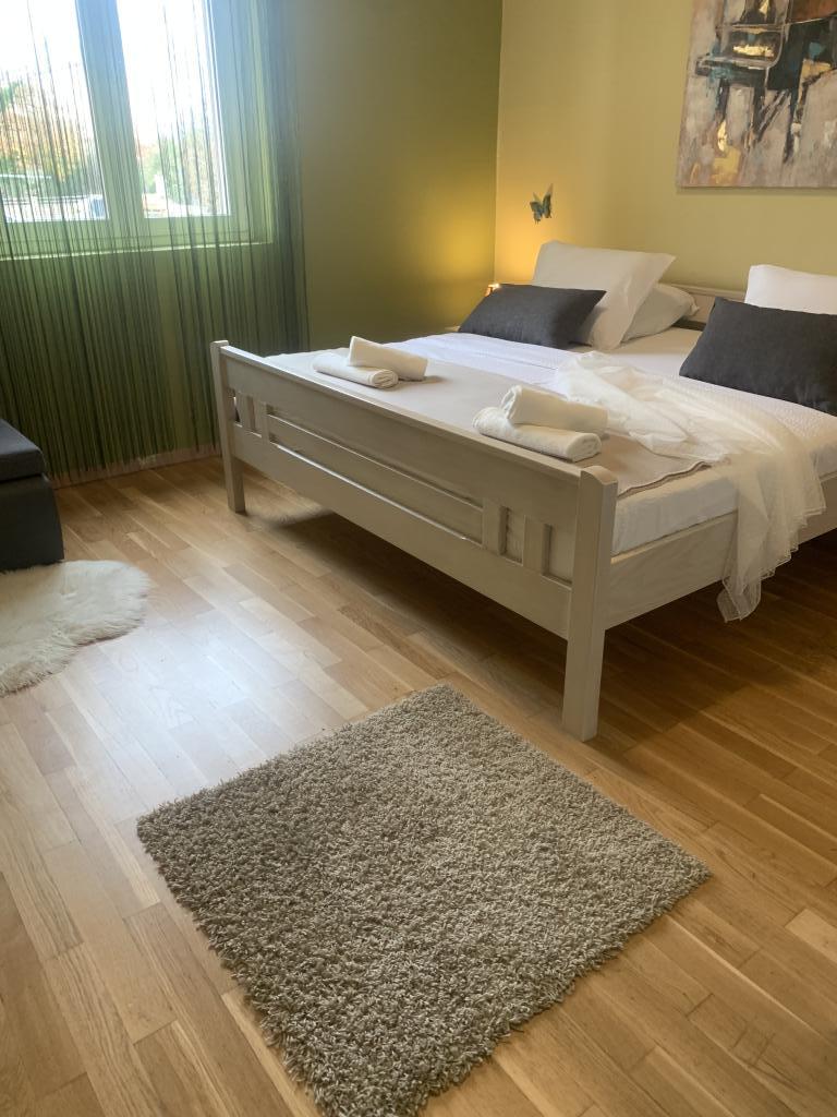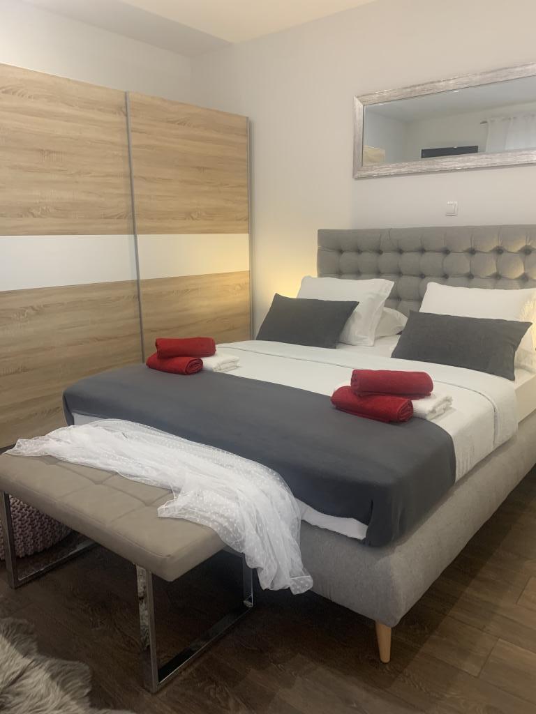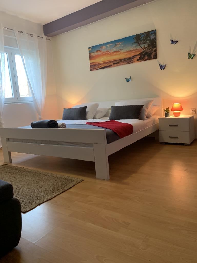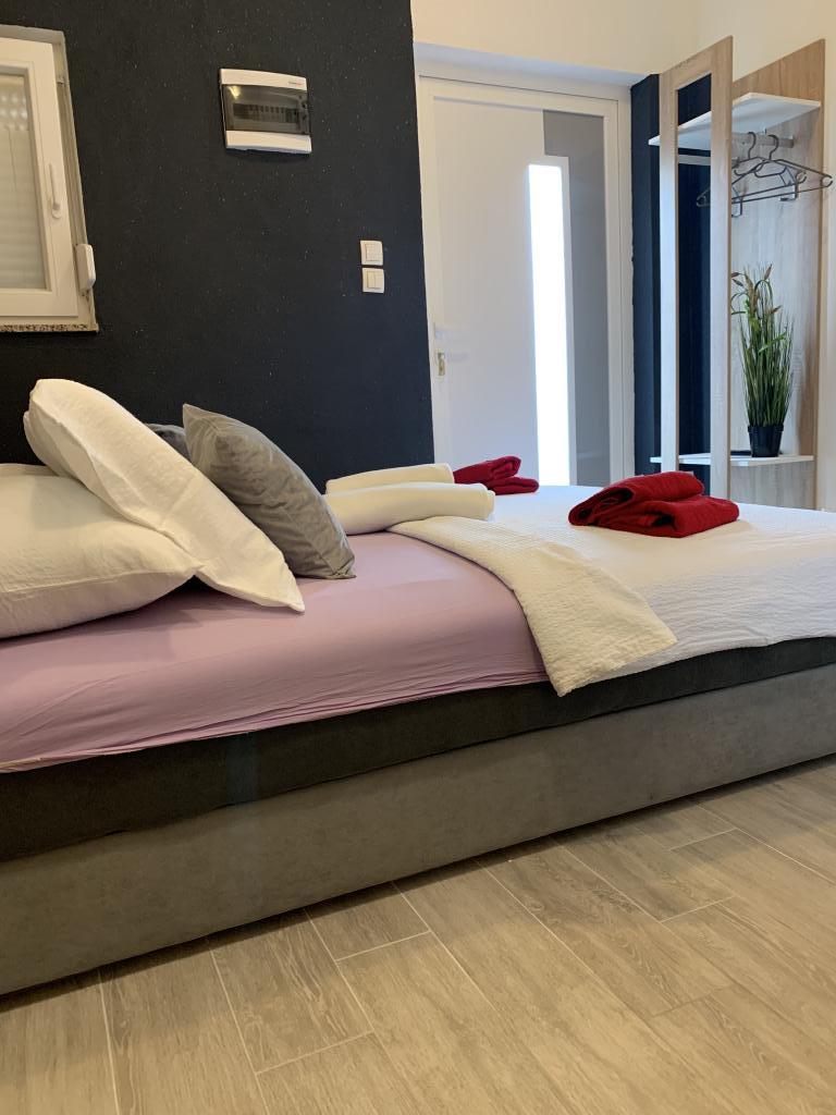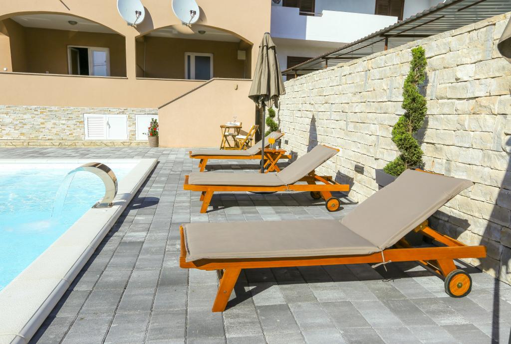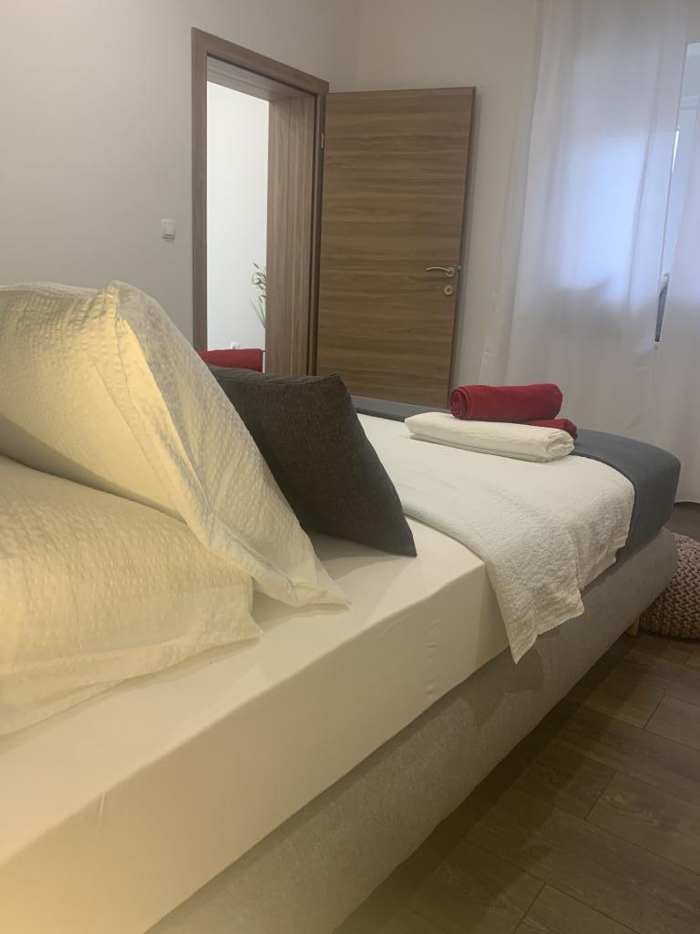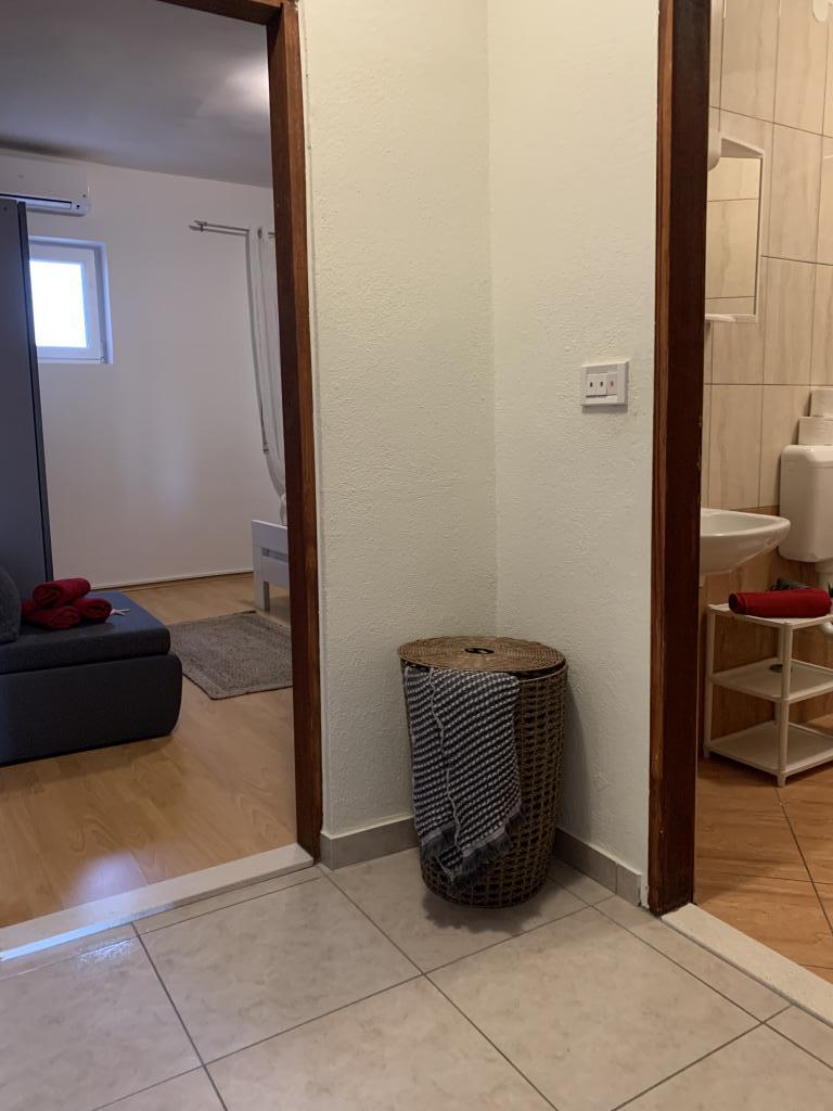 Zadbane i czyste apartamenty, w końcu znalazłem mieszkanie z wystarczającą ilością ręczników, naczyń, szklanek, bešteka. zmywarka, pralka, rolka, mikrofalówka, kuchenka, klimatyzacja. duży taras, duży parking. do plaży 2 minuty samochodem. spokojna okolica, mili gospodarze. Czysty basen wystarczająco dużo leżaków i parasoli. Łóżka są wygodne.