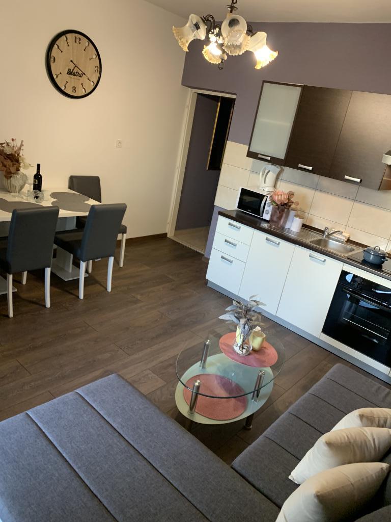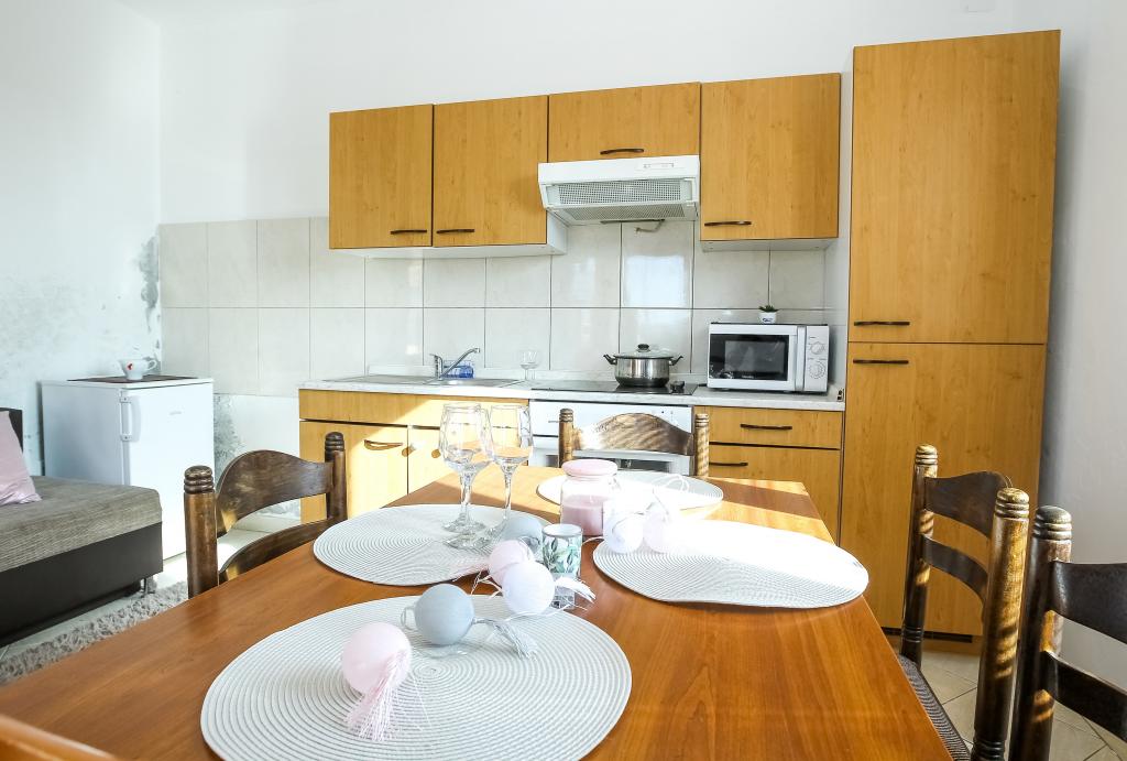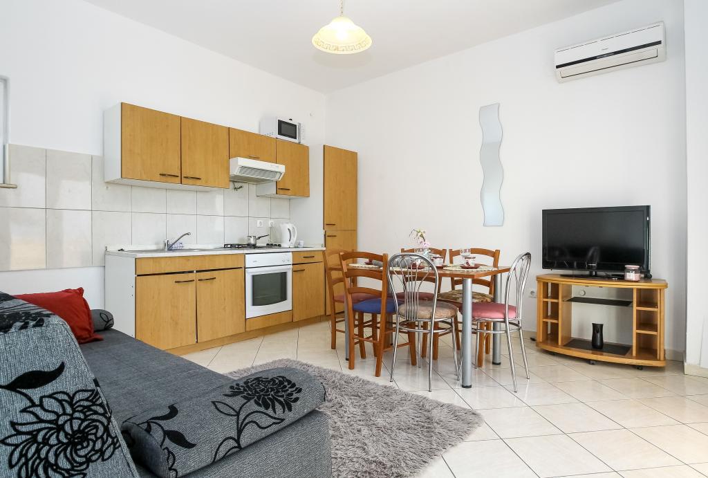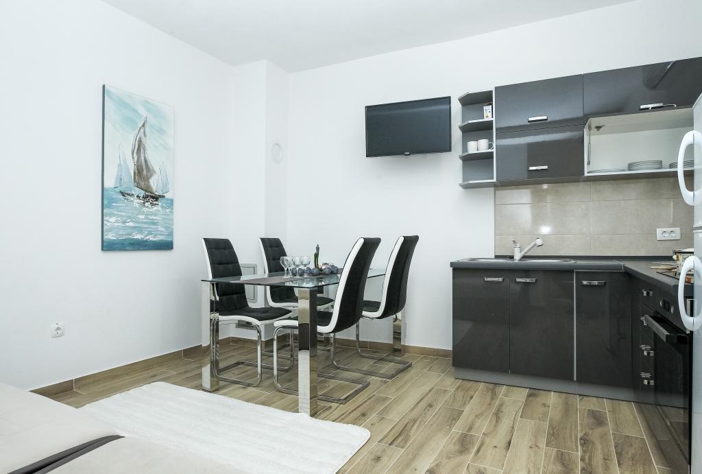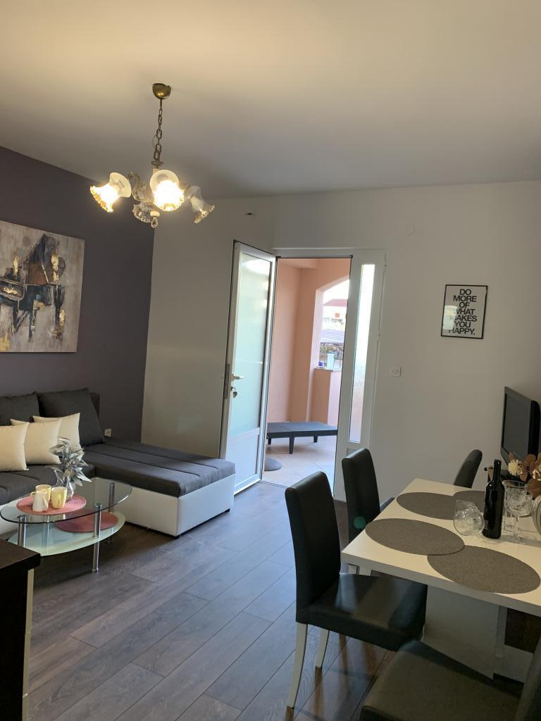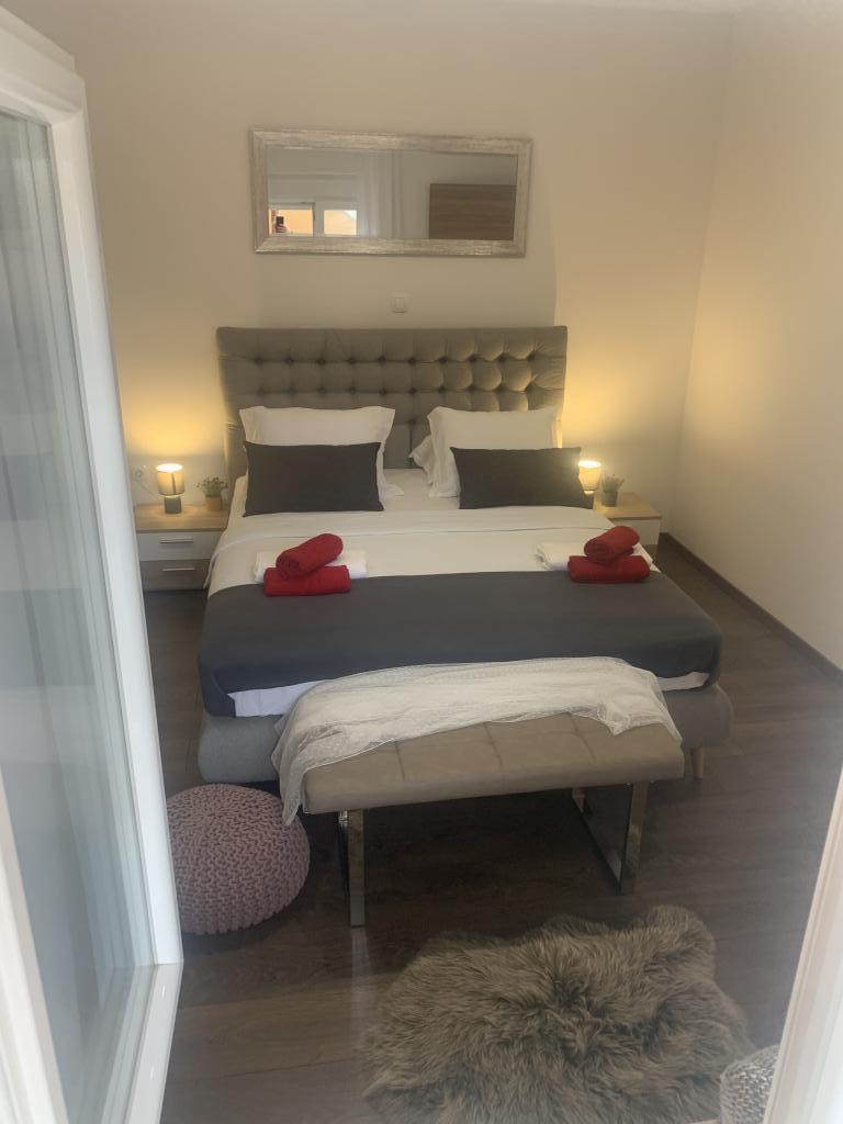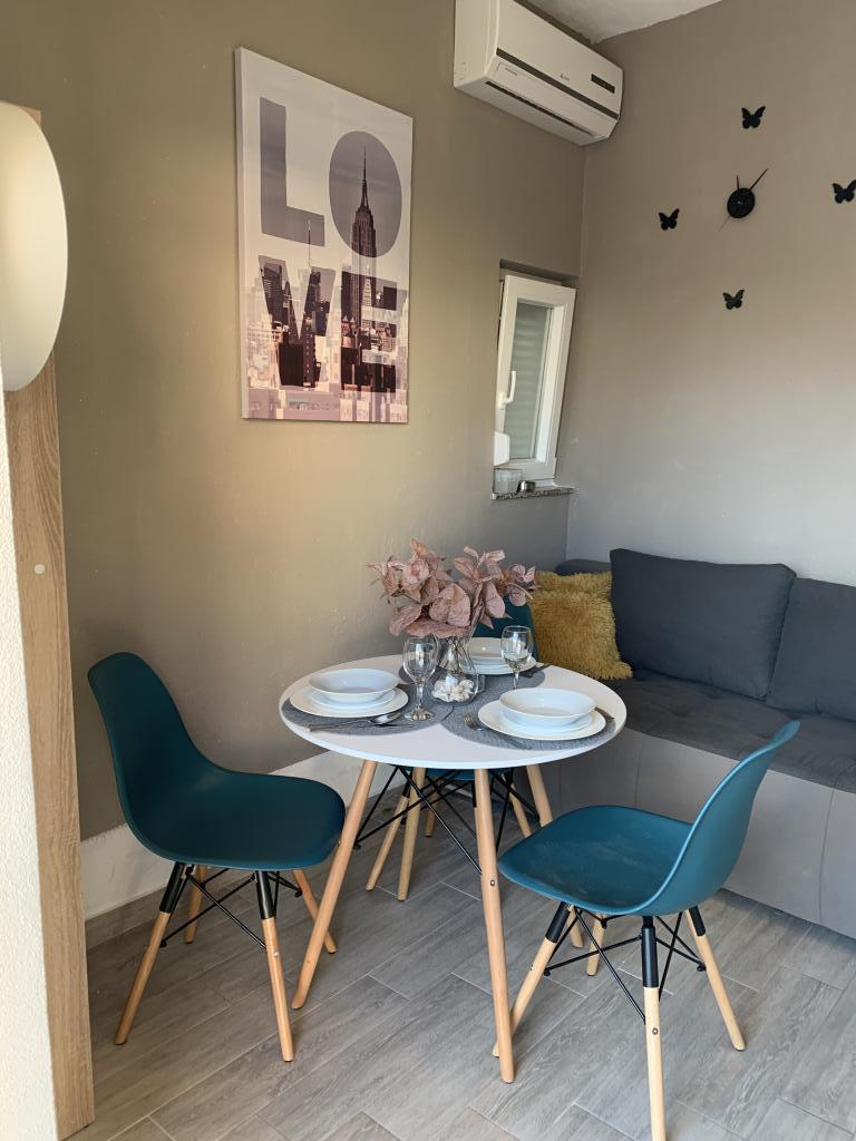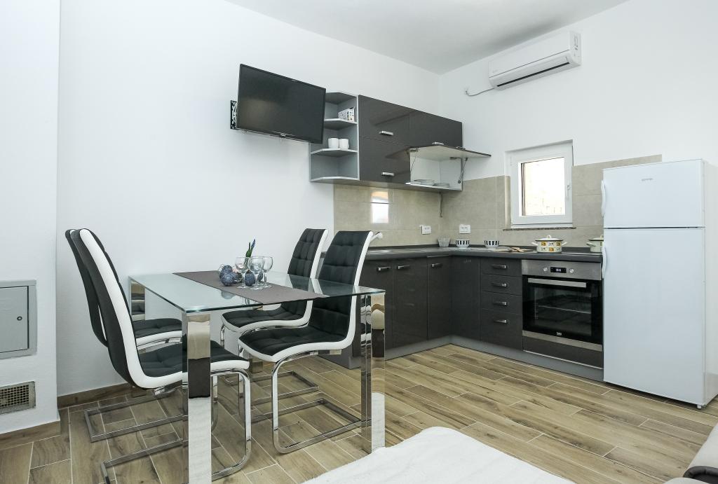 Zadbane i czyste apartamenty, w końcu znalazłem mieszkanie z wystarczającą ilością ręczników, naczyń, szklanek, bešteka. zmywarka, pralka, rolka, mikrofalówka, kuchenka, klimatyzacja. duży taras, duży parking. do plaży 2 minuty samochodem. spokojna okolica, mili gospodarze. Czysty basen wystarczająco dużo leżaków i parasoli. Łóżka są wygodne.