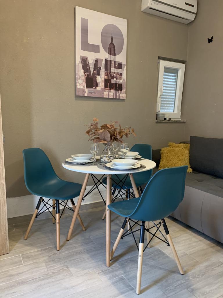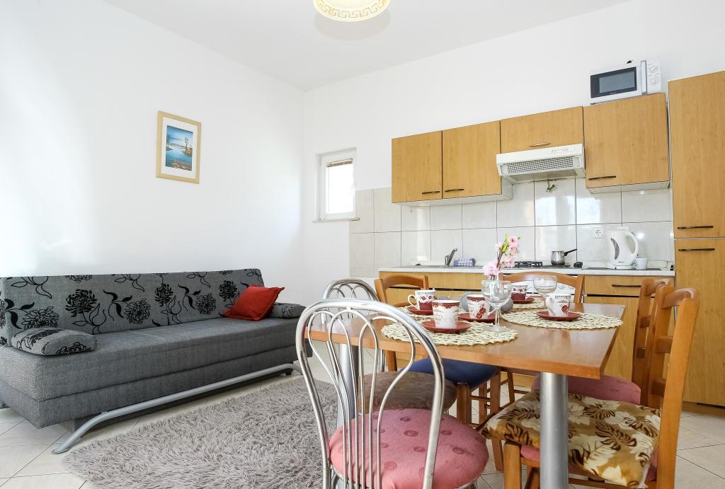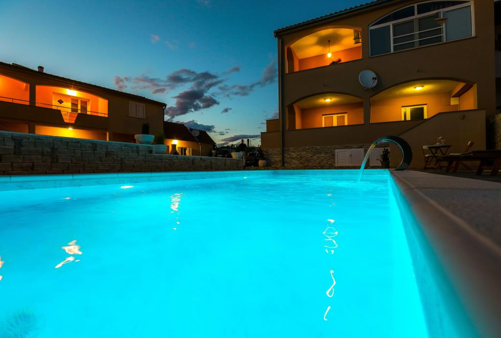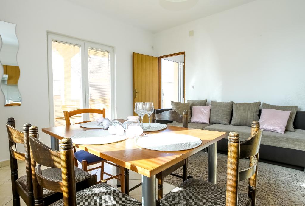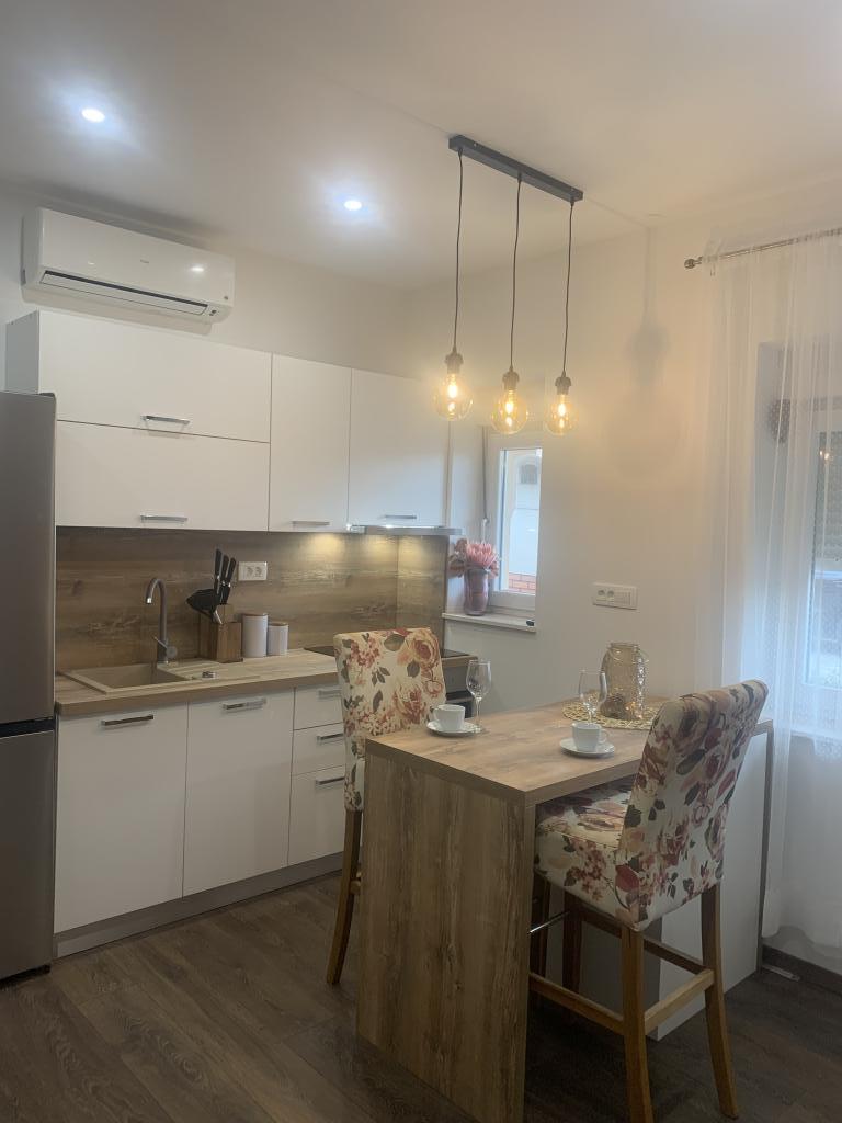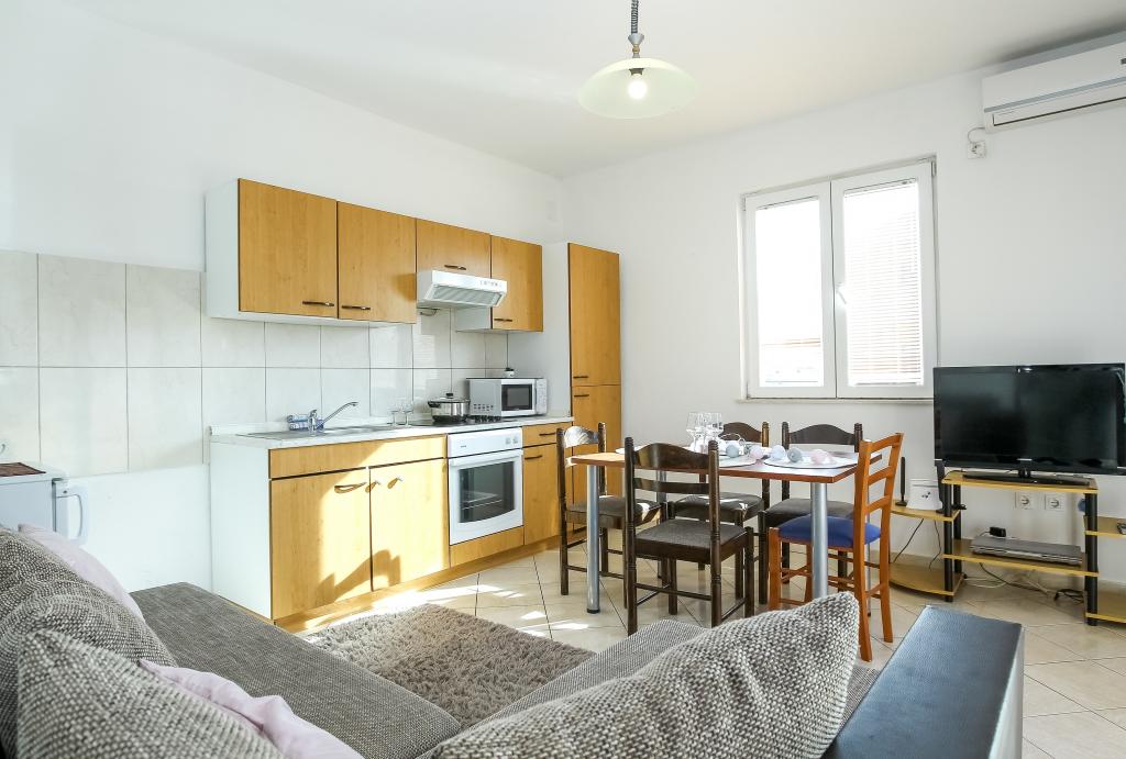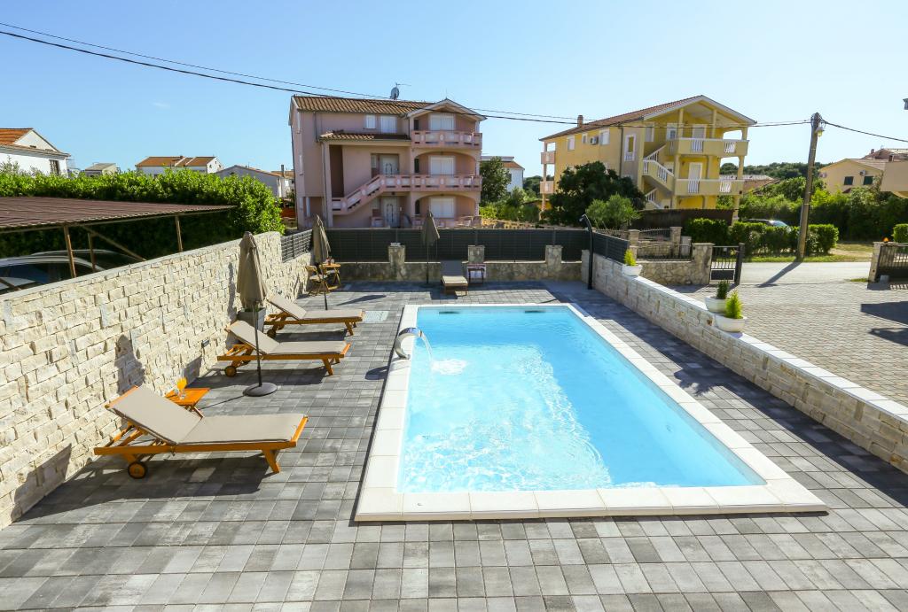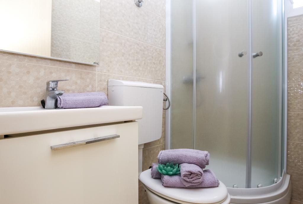 Zadbane i czyste apartamenty, w końcu znalazłem mieszkanie z wystarczającą ilością ręczników, naczyń, szklanek, bešteka. zmywarka, pralka, rolka, mikrofalówka, kuchenka, klimatyzacja. duży taras, duży parking. do plaży 2 minuty samochodem. spokojna okolica, mili gospodarze. Czysty basen wystarczająco dużo leżaków i parasoli. Łóżka są wygodne.