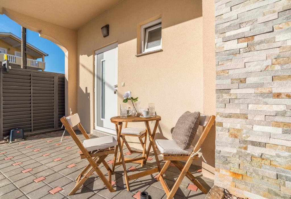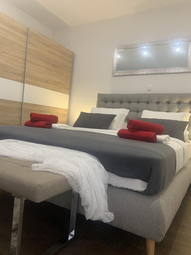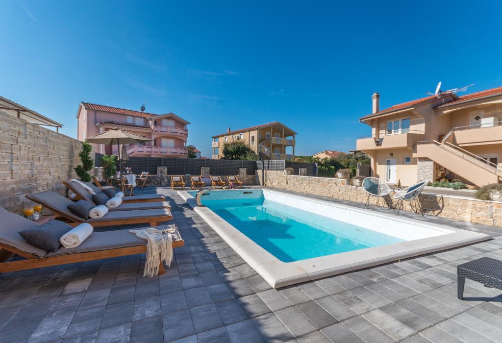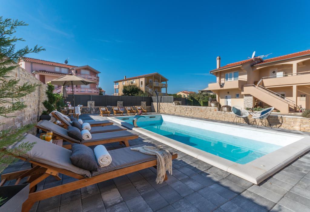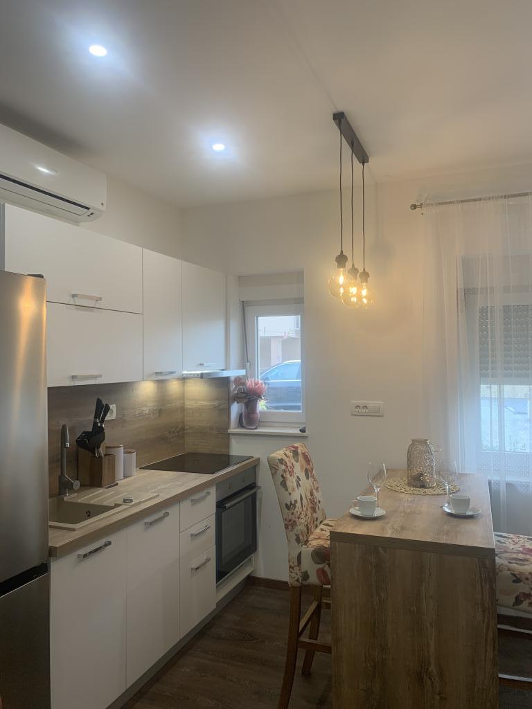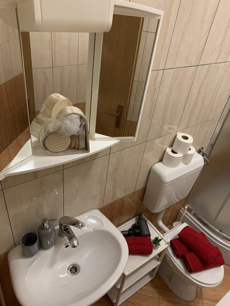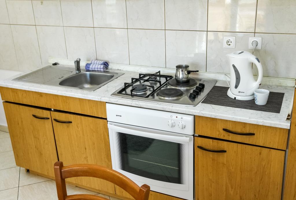 Zadbane i czyste apartamenty, w końcu znalazłem mieszkanie z wystarczającą ilością ręczników, naczyń, szklanek, bešteka. zmywarka, pralka, rolka, mikrofalówka, kuchenka, klimatyzacja. duży taras, duży parking. do plaży 2 minuty samochodem. spokojna okolica, mili gospodarze. Czysty basen wystarczająco dużo leżaków i parasoli. Łóżka są wygodne.