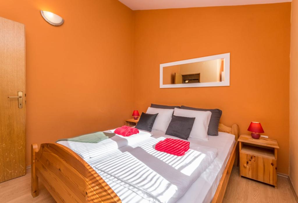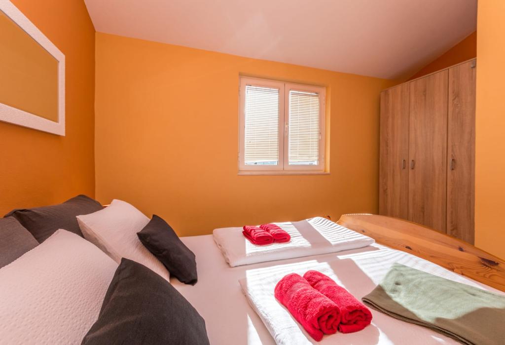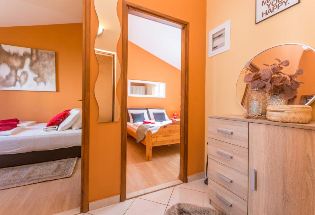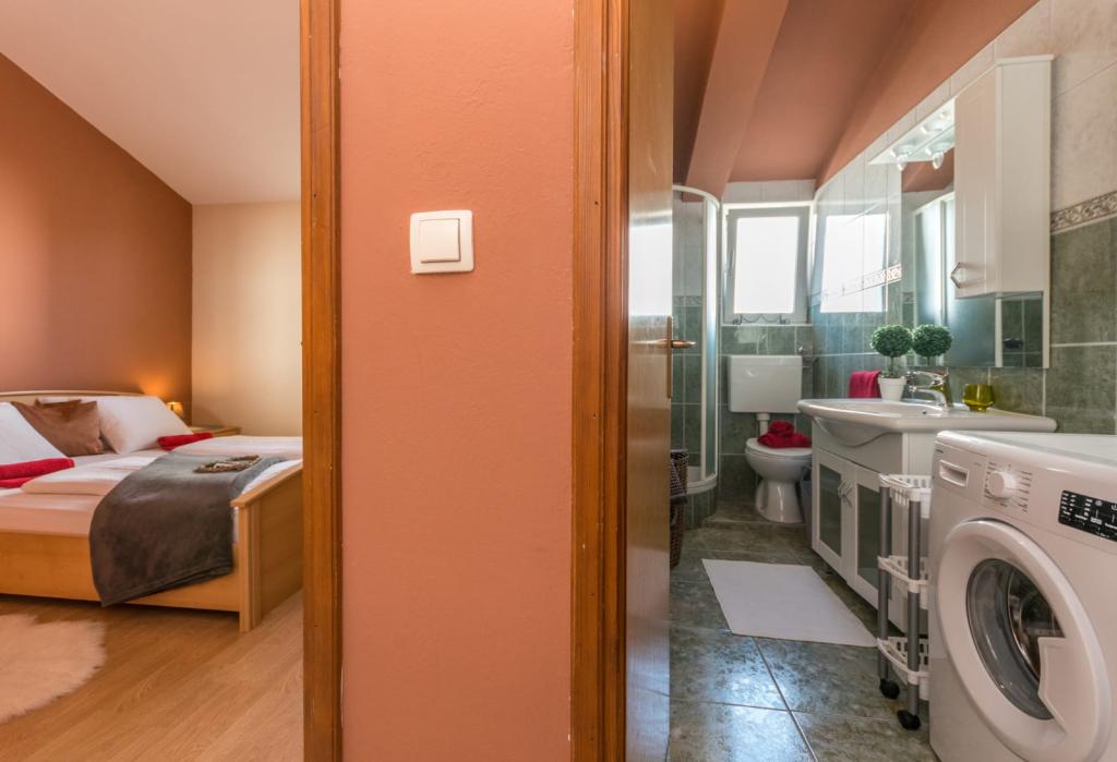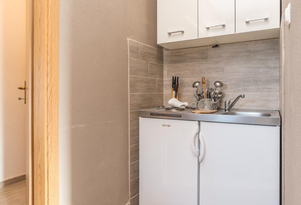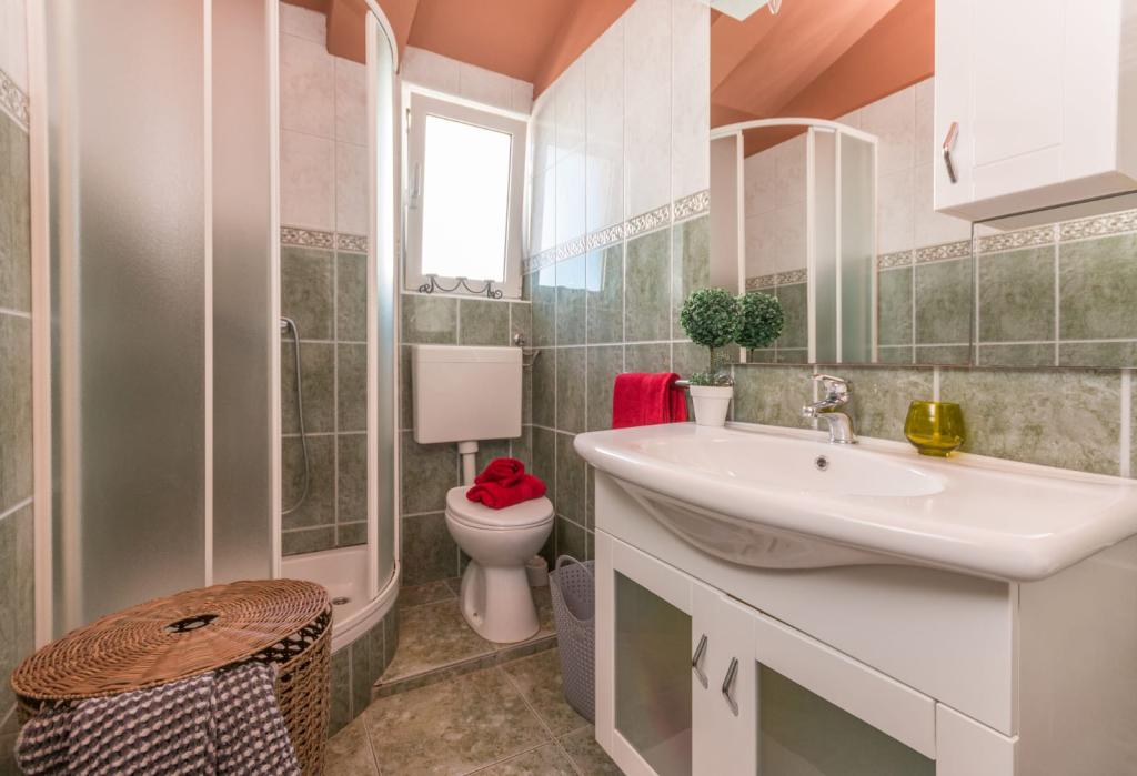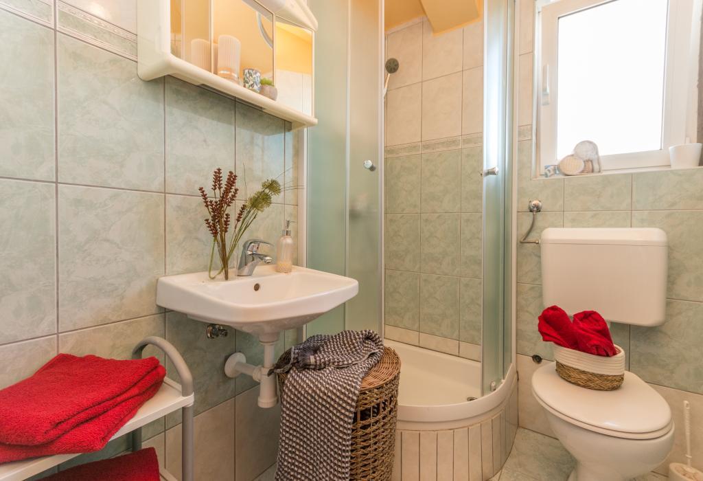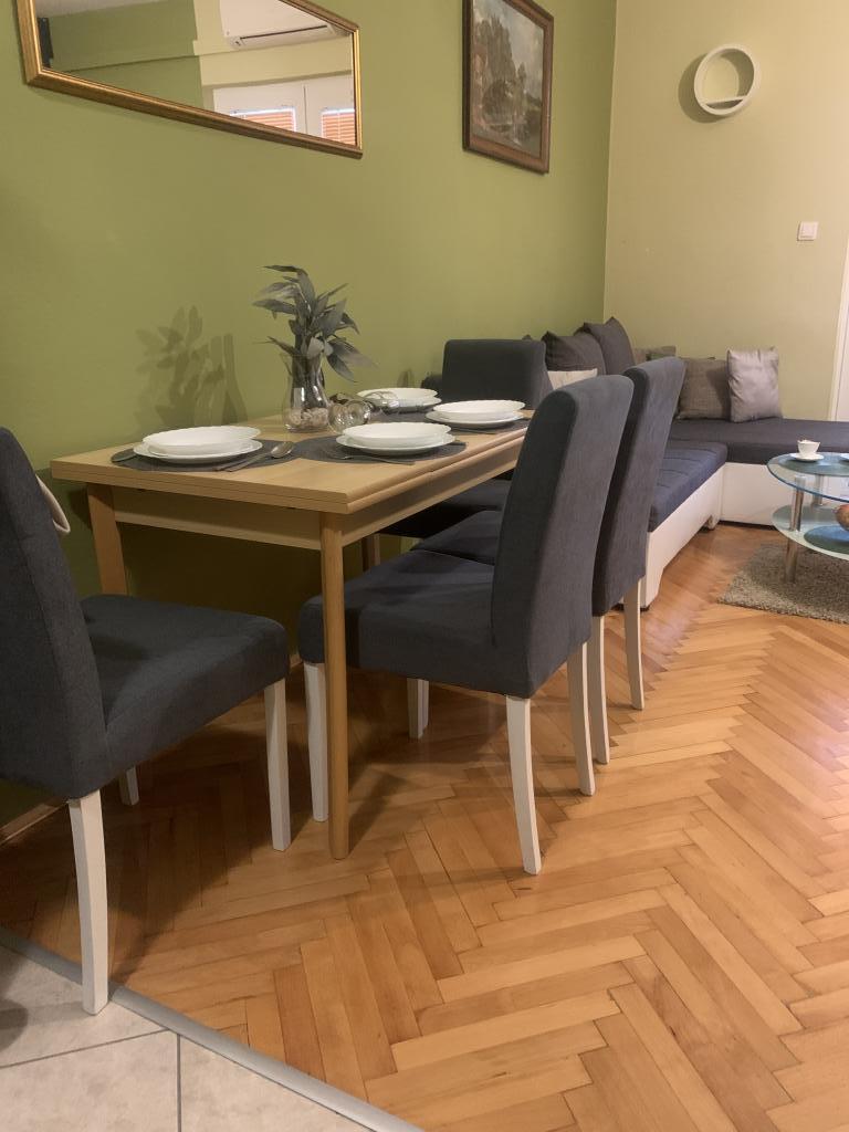 Zadbane i czyste apartamenty, w końcu znalazłem mieszkanie z wystarczającą ilością ręczników, naczyń, szklanek, bešteka. zmywarka, pralka, rolka, mikrofalówka, kuchenka, klimatyzacja. duży taras, duży parking. do plaży 2 minuty samochodem. spokojna okolica, mili gospodarze. Czysty basen wystarczająco dużo leżaków i parasoli. Łóżka są wygodne.