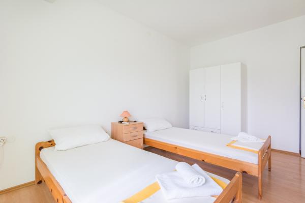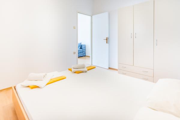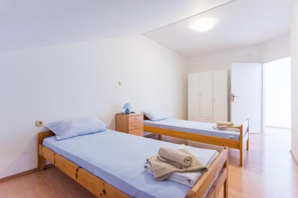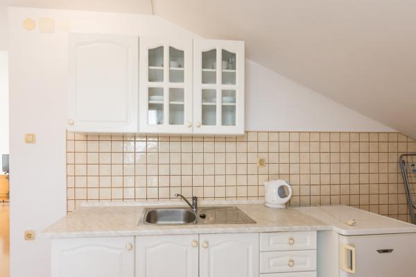 Piękny dom w Biograd, w pobliżu plaży, Bosa, dla dzieci i osób nie umiejących pływać, oferując swoje trzy apartamenty: Apartament 1, na pierwszym piętrze, z jedną sypialnią i jedną kanapą dla maksymalnie 3 osób, Apartament 2, także na pierwszym piętrze, z dwoma sypialniami i pojedynczym łóżkiem, dla maksymalnie 5 osób, a Apartament 3 na drugim piętrze, z trzema sypialniami i pojedynczym łóżkiem, dla maksymalnie 7 osób. W każdym mieszkaniu jest klimatyzacja (opcja dodatkowa opłata stosowanie 5 EUR za dzień) i telewizję satelitarną oraz kuchnię z naczynia i sztućce, lodówka z zamrażarką i ekspresem do kawy. Apartamenty 1 i 2 mają na własnym balkonie - 2 apartamenty z widokiem na morze i własną łazienką, a także w kuchniach mieszkań wciąż jest gotowanie. Mieszkanie 3 posiada dwa balkony, z których jedna jest większa, z salonu, z widokiem na morze, a także łazienka i oddzielne WC, kuchnia i piec i piekarnik.