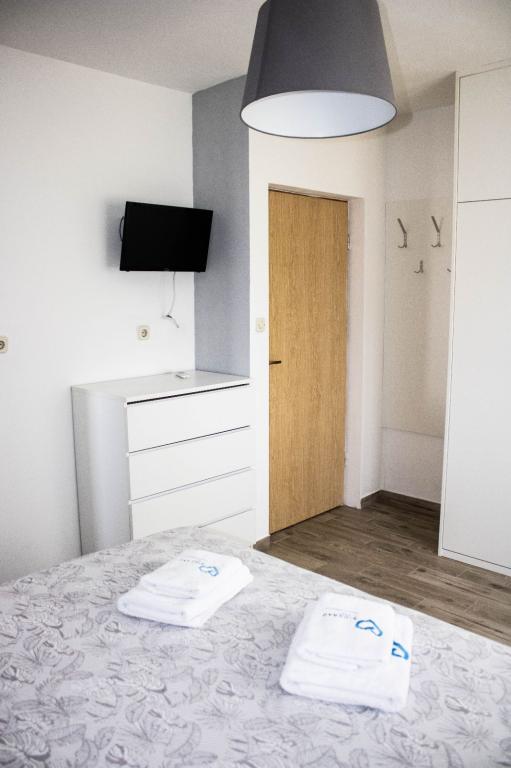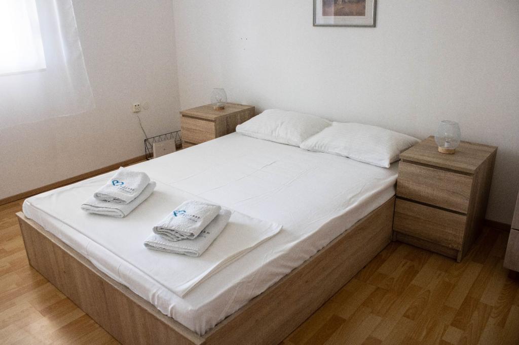Apartamenty znajdują się w rodzinnym domu (pierwsze piętro i parter) w spokojnej części miasta. 10 minut spacerem do centrum miasta i 7-8 minut do plaży. Akcja czerwiec-lipiec-ostatnia chwila