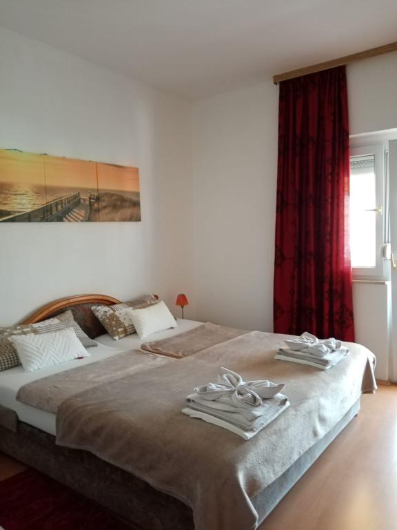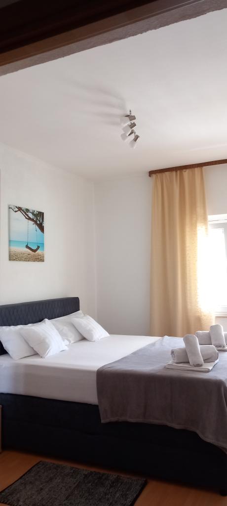 Apartamenty znajdują się na pierwszym piętrze domu rodzinnego, w spokojnej części miasta. 500 m od plaży i 700 m od centrum miasta, w pobliżu lasu sosnowego i centrum tenisowego. Parking znajduje się na podwórzu domu, w cieniu. Codziennie dostępny taras z grillem. W mieście i jego okolicach dostępne są różnorodne zajęcia sportowe, rekreacyjne i rodzinne.