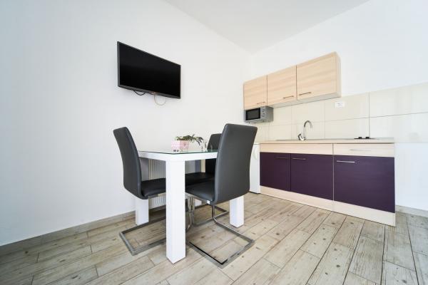 Apartamenty John usytuowane są w spokojnej części miasta, blisko do miasta i plaż. Apartamenty znajdują się w domu na poziomie gruntu znajduje się w dużym dziedzińcem otoczonym malowniczymi ogrodowa.