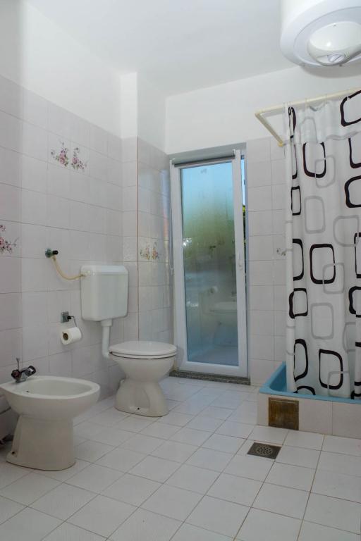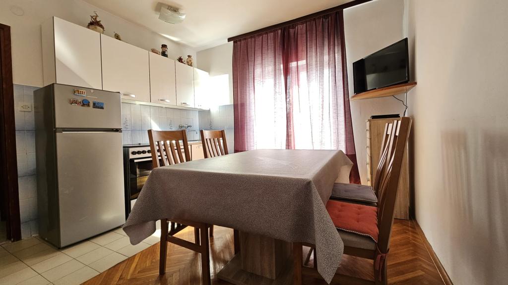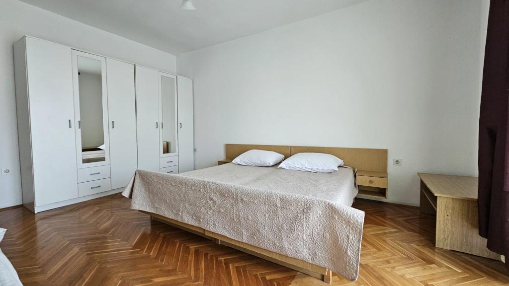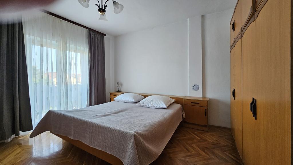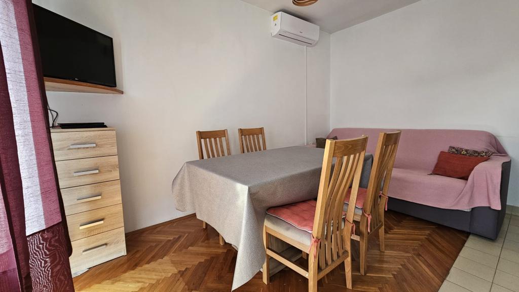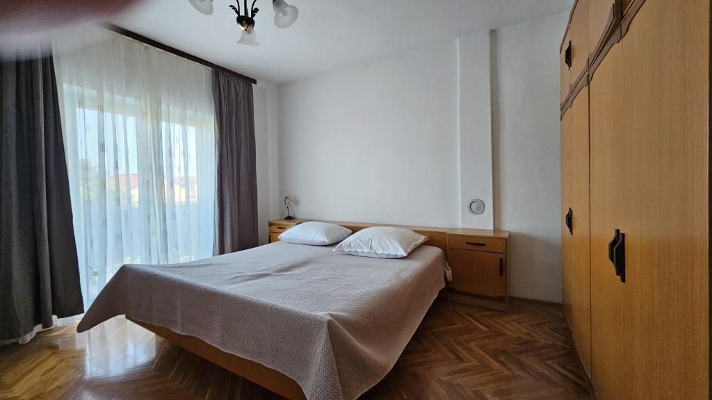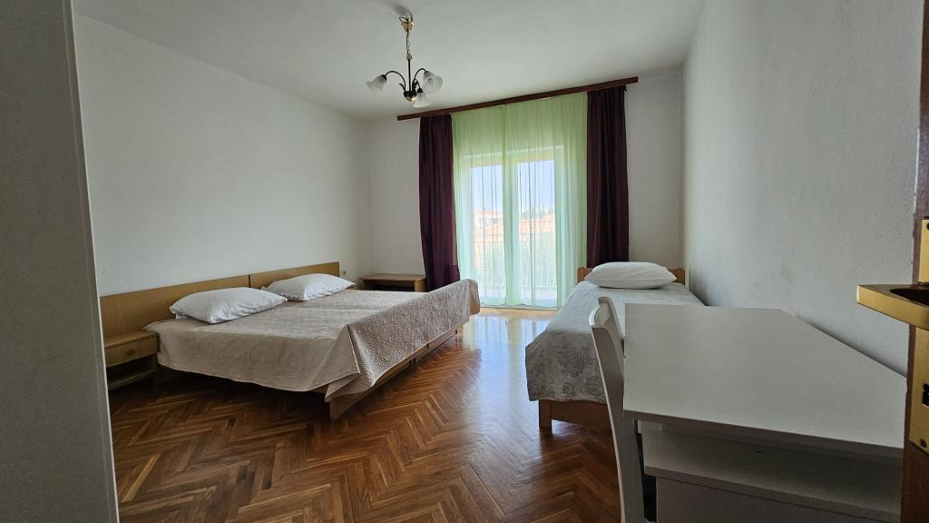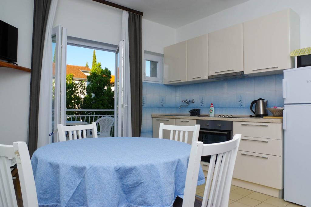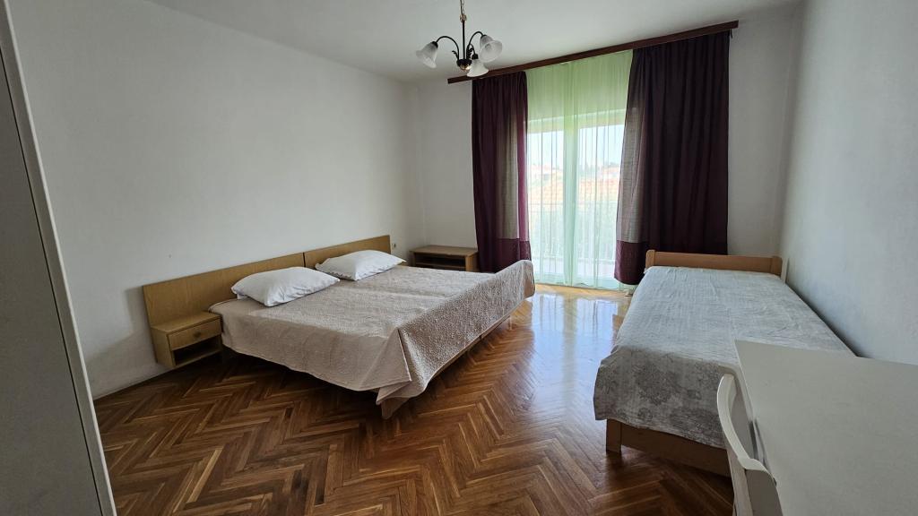 Apartamenty znajdują się na pierwszym piętrze domu rodzinnego. Parking znajduje się na podwórku. i jest wliczony w cenę apartamentu. Apartament 1 ma kuchnię z sofą, która może być podwójnym łóżkiem (tylko dla dzieci do 12 lat). łazienkę i sypialnię dla dwóch osób. Apartament 2 ma dwie oddzielne sypialnie. Jedna ma dodatkowe łóżko (tylko dla dziecka do 12 lat), kuchnię i łazienkę. Każdy pokój ma własny balkon