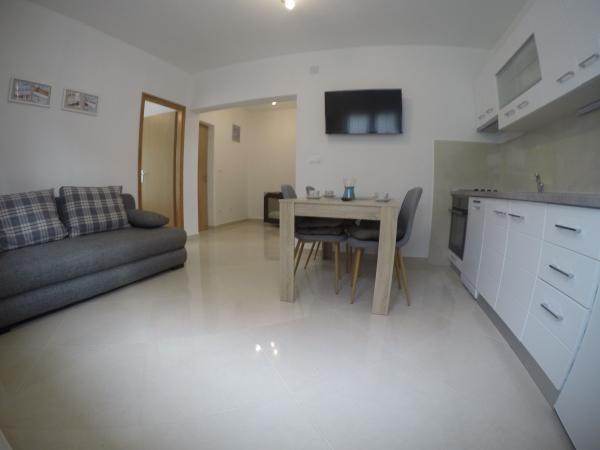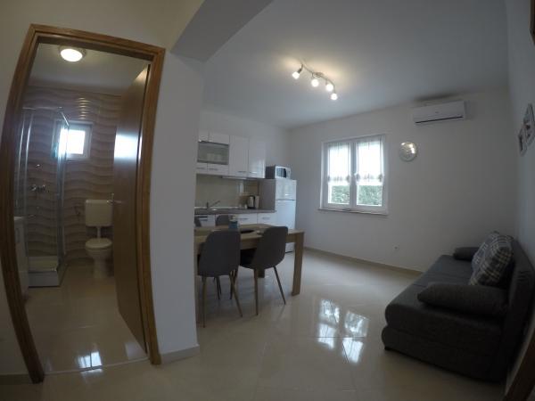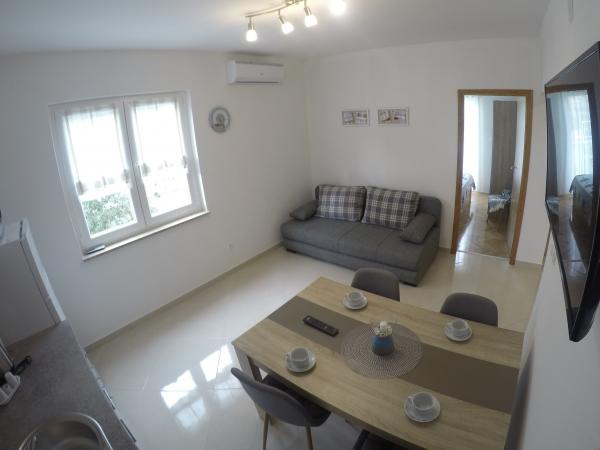 Apartamenty Maslina znajdują się w spokojnej części miasta, około 10 minut spacerem do najbliższej plaży Soline. Dom posiada 4 apartamenty, 3 x 40 m2 z balkonami i tarasami, 1 x 45 m2 z balkonem. Wszystkie apartamenty wyposażone są w klimatyzację, darmową sieć WIFI, telewizję satelitarną / TV, miejsce parkingowe i grill na podwórku oraz udogodnienia odpowiednie dla małych dzieci. W przypadku większych rodzin można od razu wynająć więcej wolnych mieszkań, a dla mniejszej liczby osób cena jest korzystniejsza.