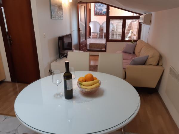 W pełni urządzone apartamenty z widokiem na morze, zaledwie 10 minut spacerem do centrum miasta i 5 minut do plaży. Są one zlokalizowane na drugim piętrze i posiada parking. Apartamenty posiadają duże tarasy, że letnie wakacje jeszcze bardziej przyjemna.