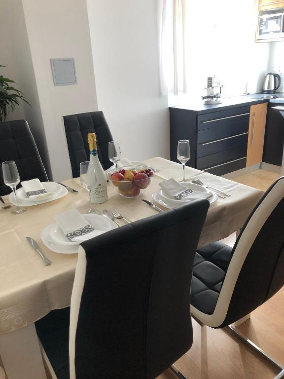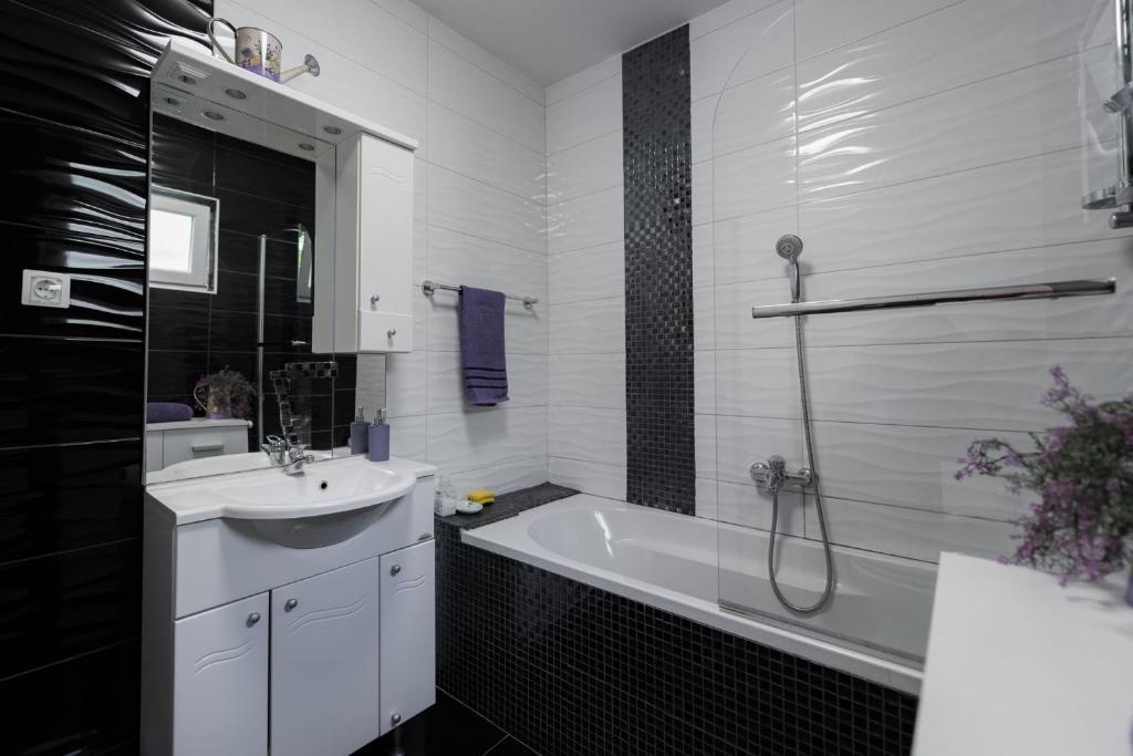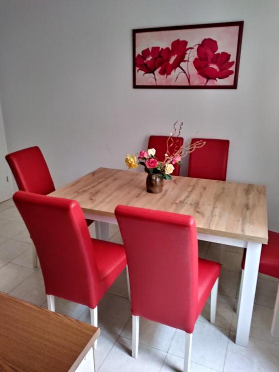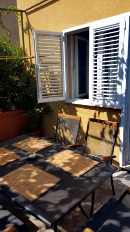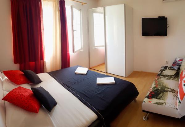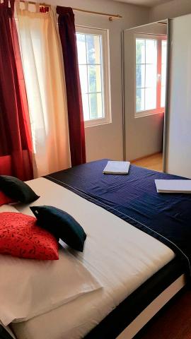 Apartament A4+2 to cały parter domu z osobnym wejściem, w pełni wyposażony i nowoczesny, powierzchnia 90 m2. Posiada przestronny i wygodny salon, dwie sypialnie, kuchnię z jadalnią, łazienkę oraz przedpokój. Do dyspozycji gości duży taras z widokiem na las sosnowy. Z przodu znajduje się zagospodarowany ogród z zielenią i kwiatami. Znajduje się przy cichej, pięknie zagospodarowanej ulicy. Do plaży można dojść w 15 minut. Parking znajduje się w cieniu przed domem i jest dostępny przez całą dobę dzień. Obok domu dostępny jest grill i piekarnia. Jest wyposażony dla 6 osób, na życzenie dostępne jest bezpłatnie łóżeczko dziecięce. Apartament 2+1, znajduje się na pierwszym piętrze domu, 40 m2, nowocześnie wyposażony, całkowicie nowy z widokiem na las sosnowy, składa się z kuchni, jadalni, łazienki i sypialni. Telewizja, internet, klimatyzacja. Jest wyposażony na pobyt 3 osób. Do dyspozycji gości grill, piekarnia, parking oraz taras. Mieszkanie posiada osobne wejście i własny taras...