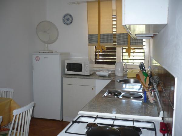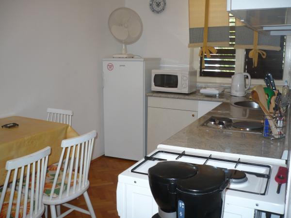 , Obiekt położony jest w cichej okolicy Biogradu. Apartament znajduje się 5 minut spacerem do plaży BOSANA i 7 minut spacerem do centrum miasta. , Taras znajduje się dziedziniec z możliwością grillowania. Cena obejmuje pościel, ręczniki, koce, zużycie wody, internet, klimatyzacja, miejsce parkingowe. W kuchni znajduje się dopływ gazu, piekarnik, mikrofalówka, ekspres do kawy, lodówka, Sob tv. W łazience znajduje się wanna. prysznicem i WC. 2 w 4, WC jest oddzielnie.