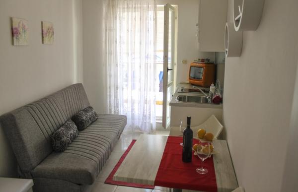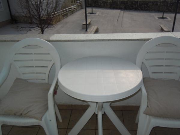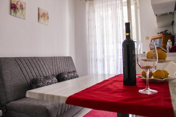 Mieszkanie znajduje się w centrum miasta, w bardzo spokojnej okolicy, zaledwie 10 m od morza. Mieszkanie jest w pełni wyposażone. Znajduje się zaledwie kilka minut spacerem od morza od kamienistej plaży Drazica. Parking jest zapewniony. Idealny dla trzech osób dorosłych lub małżeństwa z dwójką dzieci. W przestronnym pokoju znajduje się rozkładana sofa. Posiada duży zadaszony taras z widokiem na morze, kuchnię i łazienkę. Ma wi fi i klimatyzację. Najpiękniejszą częścią mieszkania jest duży balkon z widokiem na mały plac przed domem i morze.