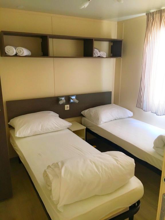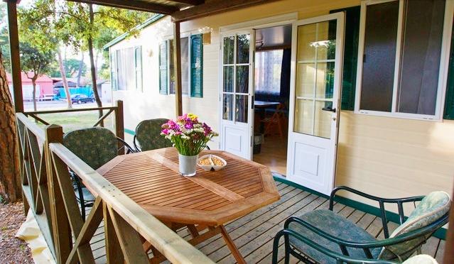 Camping Biograd znajduje się w miejscowości o tej samej nazwie, zaledwie 300 m od piaszczystej i żwirowej plaży, a do centrum miasta jest tylko kilka minut spacerem. W bezpośrednim sąsiedztwie kempingu znajdują się korty tenisowe. W obozie znajdują się 3 apartamenty (z 1 i 2 pokojami). Każdy apartament posiada w pełni wyposażoną kuchnię (z naczyniami), 1 lub 2 pokoje z podwójnym łóżkiem (pościel), salon z dużą rozkładaną sofą (dla dwóch osób), 1 lub 2 łazienki (WC, prysznic i umywalka), klimatyzację TV , WIFI. Na terenie kempingu znajdują się wygodne i nowoczesne domki mobilne, które są oddzielnymi, praktycznymi i funkcjonalnymi jednostkami z klimatyzacją i TV.Składają się z pokoju dziennego z aneksem kuchennym, dwóch sypialni (jedna z łóżkiem małżeńskim, druga z 2 łóżkami pojedynczymi). , łazienki (WC, prysznic, umywalka), tarasy z baldachimem. Apartamenty i domki mobilne są przeznaczone wyłącznie na wakacje, ponieważ znajdują się w cichym lesie sosnowym w miejskiej części miasta i nie są przeznaczone na imprezy i imprezy.