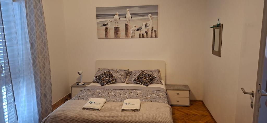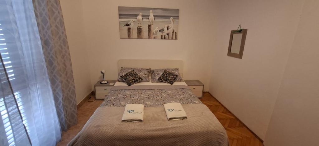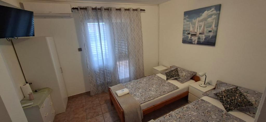 Apartamenty znajdują się w Biogradzie na moru w osadzie Kumenat. Idealny na rodzinne wakacje. Blisko plaży. Wybrzeże jest wcięte tak, aby każdy mógł znaleźć swój własny, cichy zakątek nad morzem. Plaże są piaszczyste i żwirowe. Do najbliższej plaży można dojść w 5 minut, a do centrum miasta można dojść w około 20 minut spokojnym spacerem promenadą nad morzem. Miasto Biograd oferuje liczne udogodnienia dla dorosłych i dzieci.